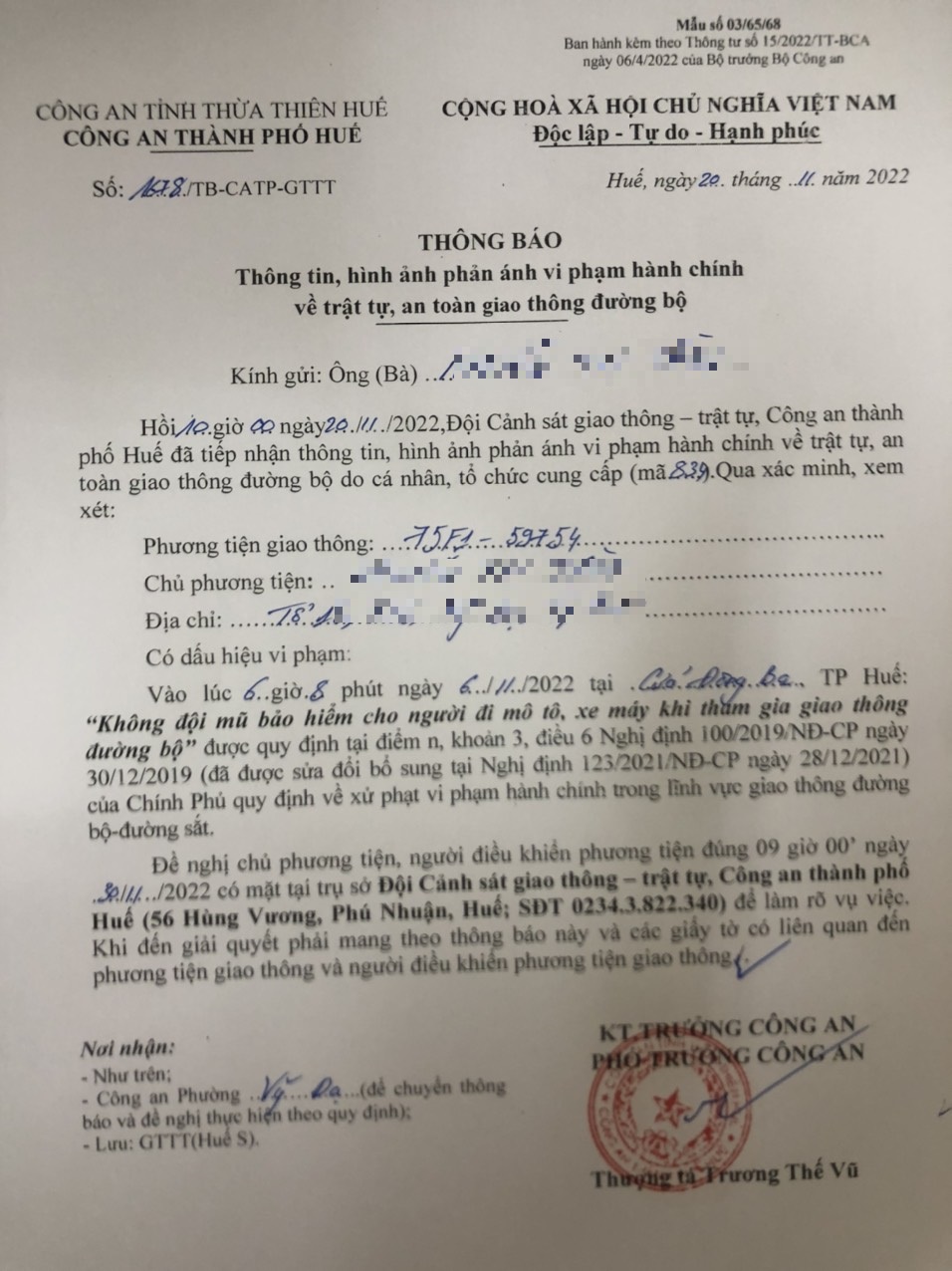 Vấn đề quý Ông/Bà phản ánh, Công an tỉnh đã chỉ đạo Công an thành phố Huế kiểm tra và xin thông báo kết quả xử lý như sau:
