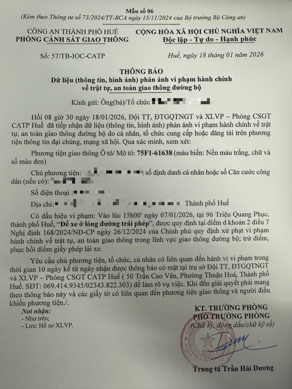 Vấn đề quý Ông/Bà phản ánh, Phòng Cảnh sát giao thông – Công an thành phố Huế đã kiểm tra và xin thông báo kết quả như sau: