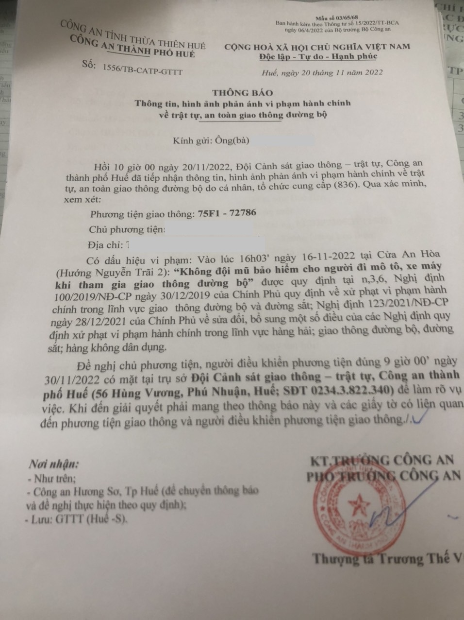 Vấn đề Ông/Bà phản ánh, Công an tỉnh đã chỉ đạo Công an thành phố Huế kiểm tra và xin thông báo kết quả xử lý như sau: