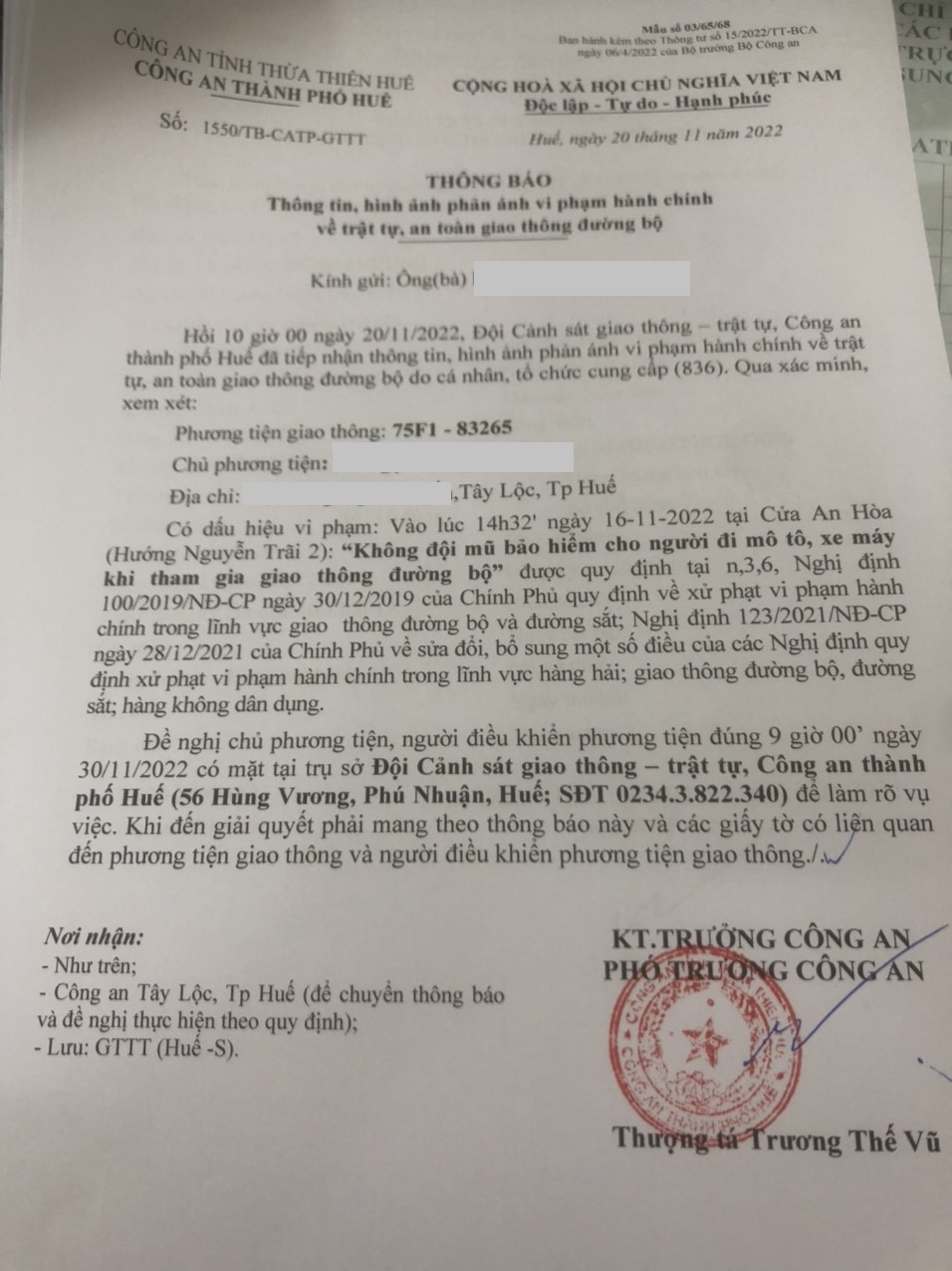 Vấn đề Ông/Bà phản ánh, Công an tỉnh đã chỉ đạo Công an thành phố Huế kiểm tra và xin thông báo kết quả xử lý như sau: