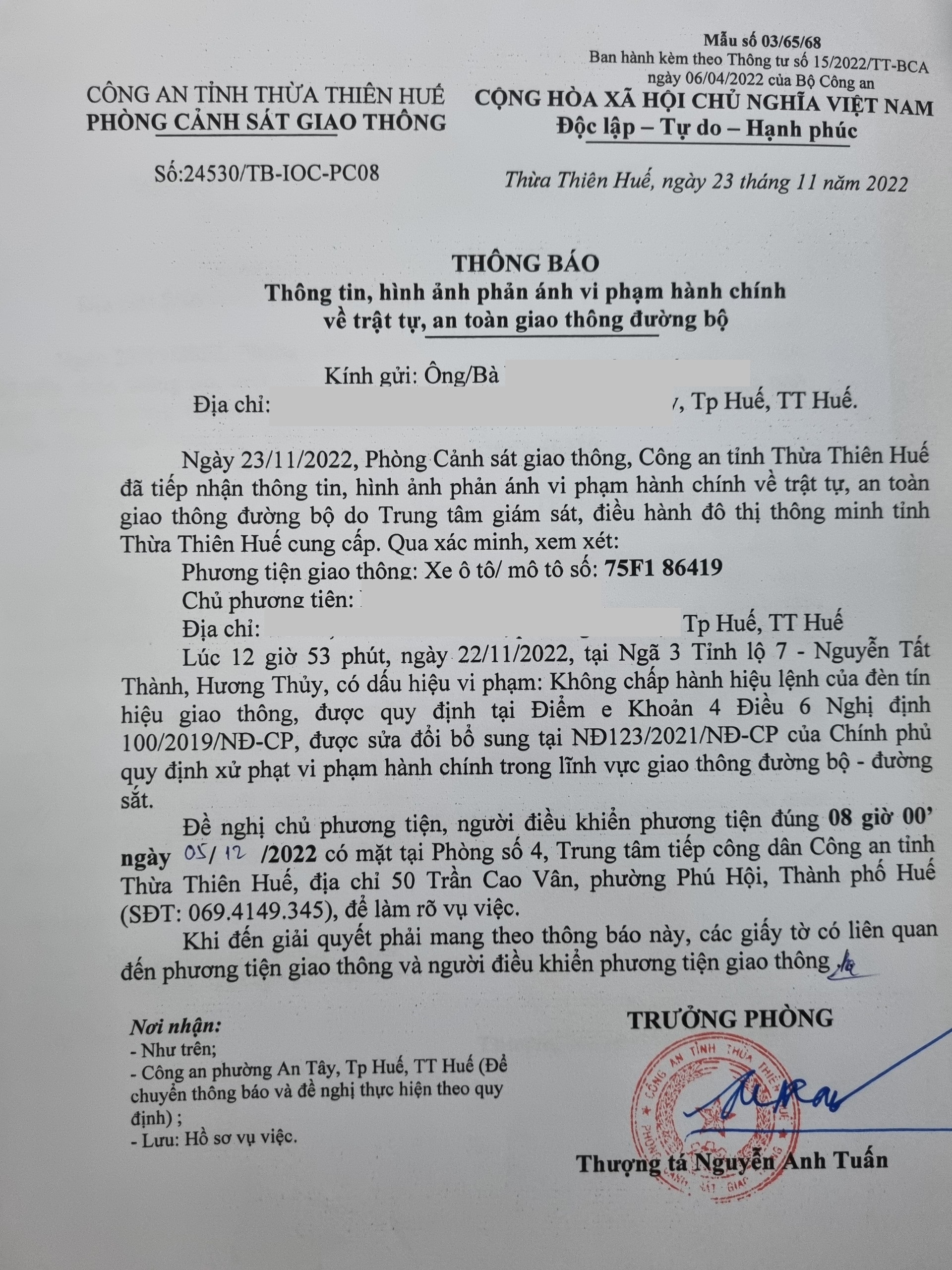 Vấn đề Ông/Bà phản ánh, Công an tỉnh đã chỉ đạo Phòng Cảnh sát giao thông xin thông báo kết quả xử lý như sau: