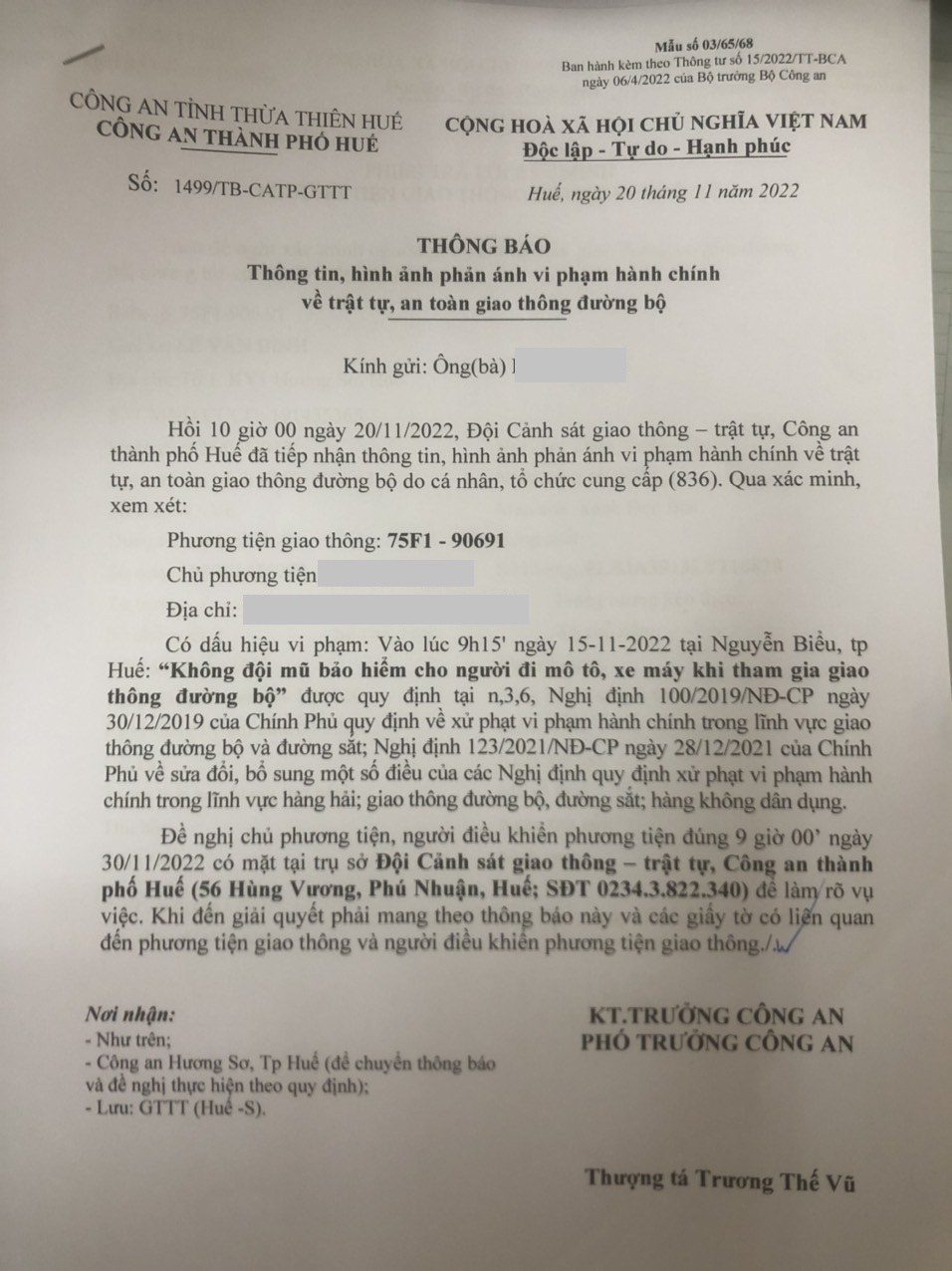 Vấn đề Ông/Bà phản ánh, Công an tỉnh đã chỉ đạo Công an thành phố Huế kiểm tra và xin thông báo kết quả xử lý như sau: