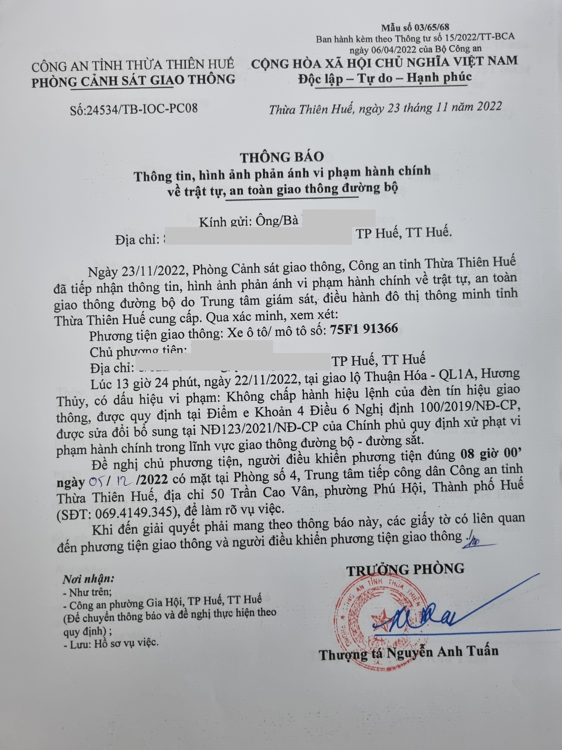 Vấn đề Ông/Bà phản ánh, Công an tỉnh đã chỉ đạo Phòng Cảnh sát giao thông xin thông báo kết quả xử lý như sau: