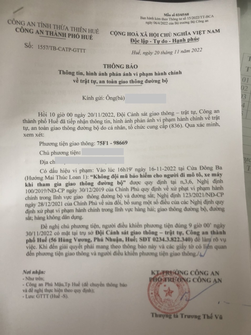 Vấn đề Ông/Bà phản ánh, Công an tỉnh đã chỉ đạo Công an thành phố Huế kiểm tra và xin thông báo kết quả xử lý như sau: