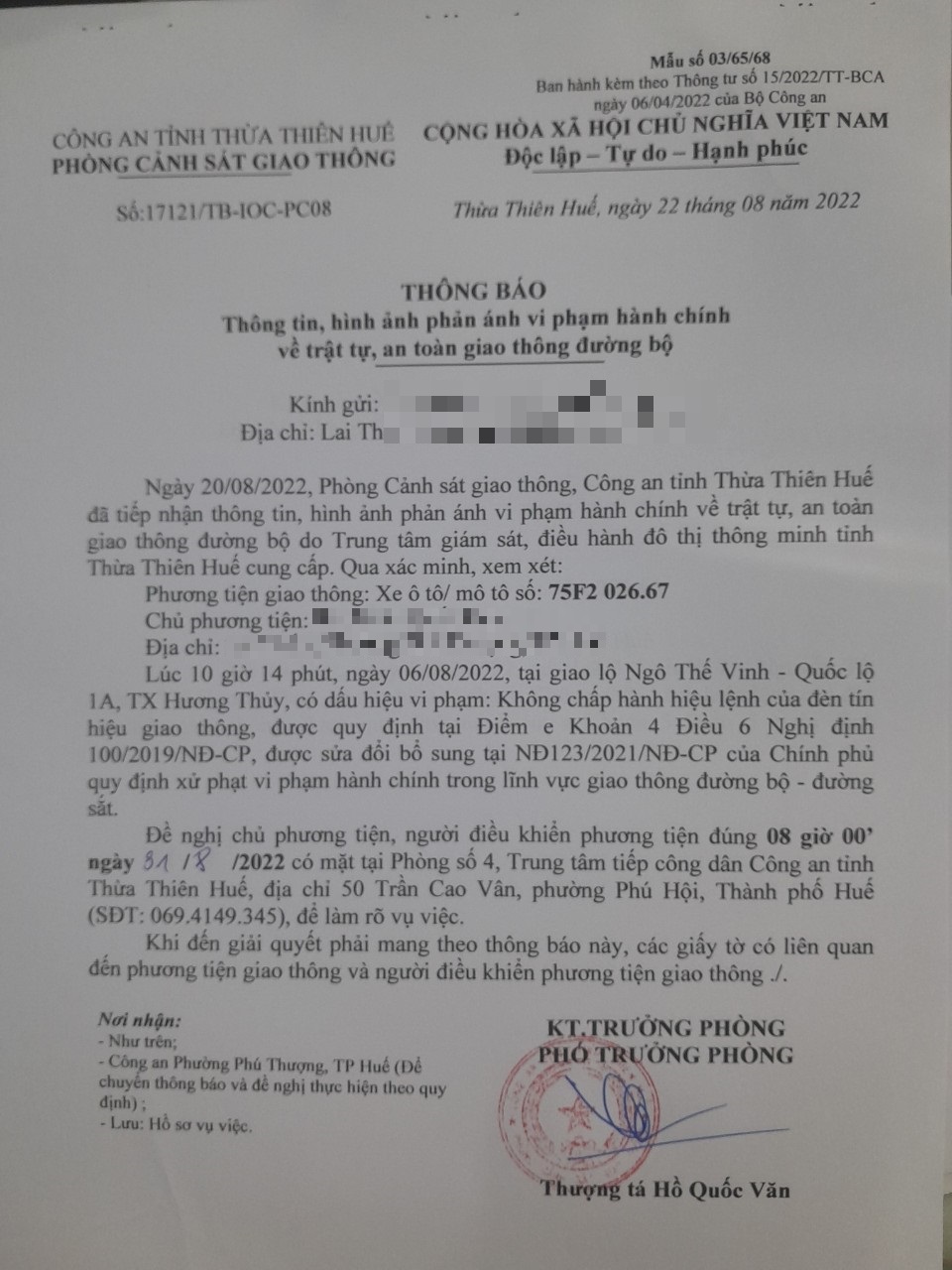 Phòng CSGT đã gửi thông báo, yêu cầu chủ phương tiện đến làm việc theo quy định của pháp luật. Tuy nhiên, đã quá ngày hẹn nhưng chủ phương tiện vẫn chưa đến làm việc theo yêu cầu. Phòng CSGT sẽ tiếp tục thông báo Công an địa phương nơi chủ phương tiện thường trú; đồng thời, thông báo các tổ tuần tra kiểm soát trên địa bàn, trong quá trình làm nhiệm vụ nếu phát hiện sẽ tiến hành dừng xe để xử lý.
