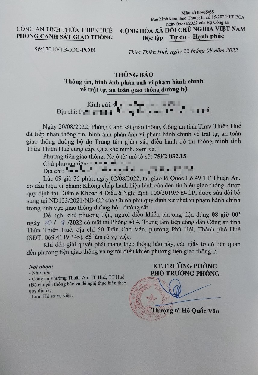 Vấn đề Ông/Bà phản ánh, Công an tỉnh đã chỉ đạo Phòng Cảnh sát giao thông xin thông báo kết quả xử lý như sau: