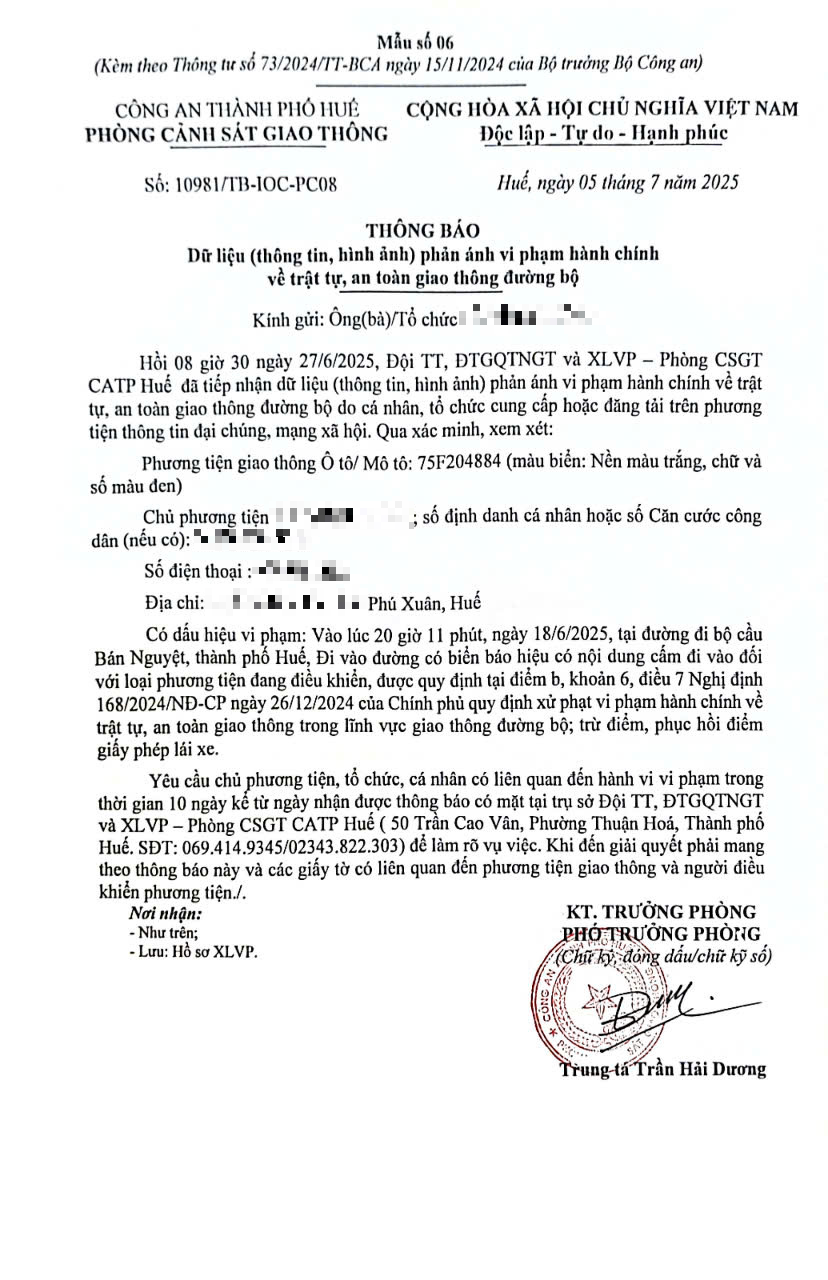 Vấn đề quý Ông/Bà phản ánh, Phòng Cảnh sát giao thông – Công an thành phố Huế đã kiểm tra và xin thông báo kết quả như sau: