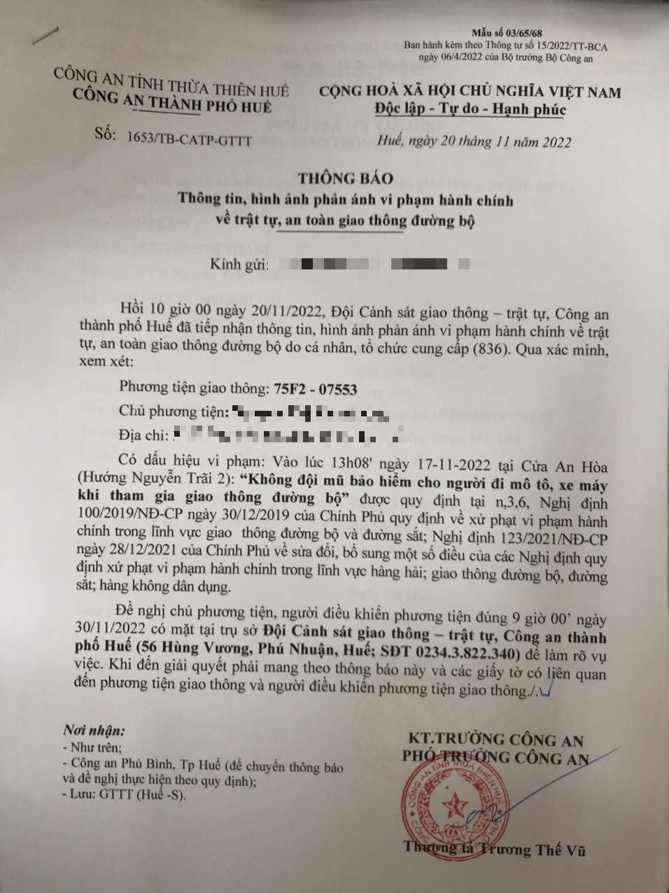 Vấn đề Ông/Bà phản ánh, Công an tỉnh đã chỉ đạo Công an thành phố Huế kiểm tra và xin thông báo kết quả xử lý như sau: