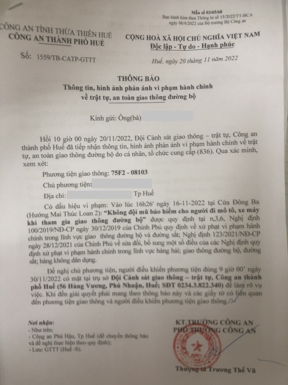 Vấn đề Ông/Bà phản ánh, Công an tỉnh đã chỉ đạo Công an thành phố Huế kiểm tra và xin thông báo kết quả xử lý như sau:
