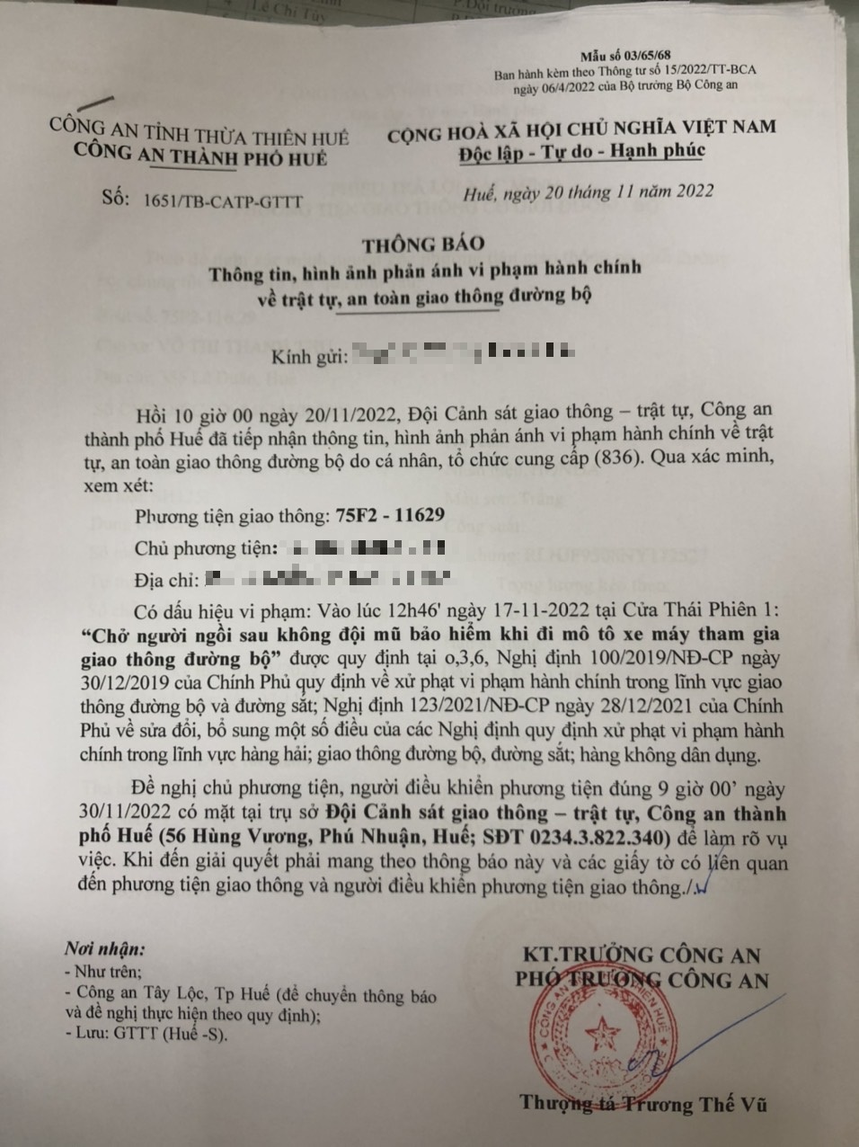 Vấn đề Ông/Bà phản ánh, Công an tỉnh đã chỉ đạo Công an thành phố Huế kiểm tra và xin thông báo kết quả xử lý như sau: