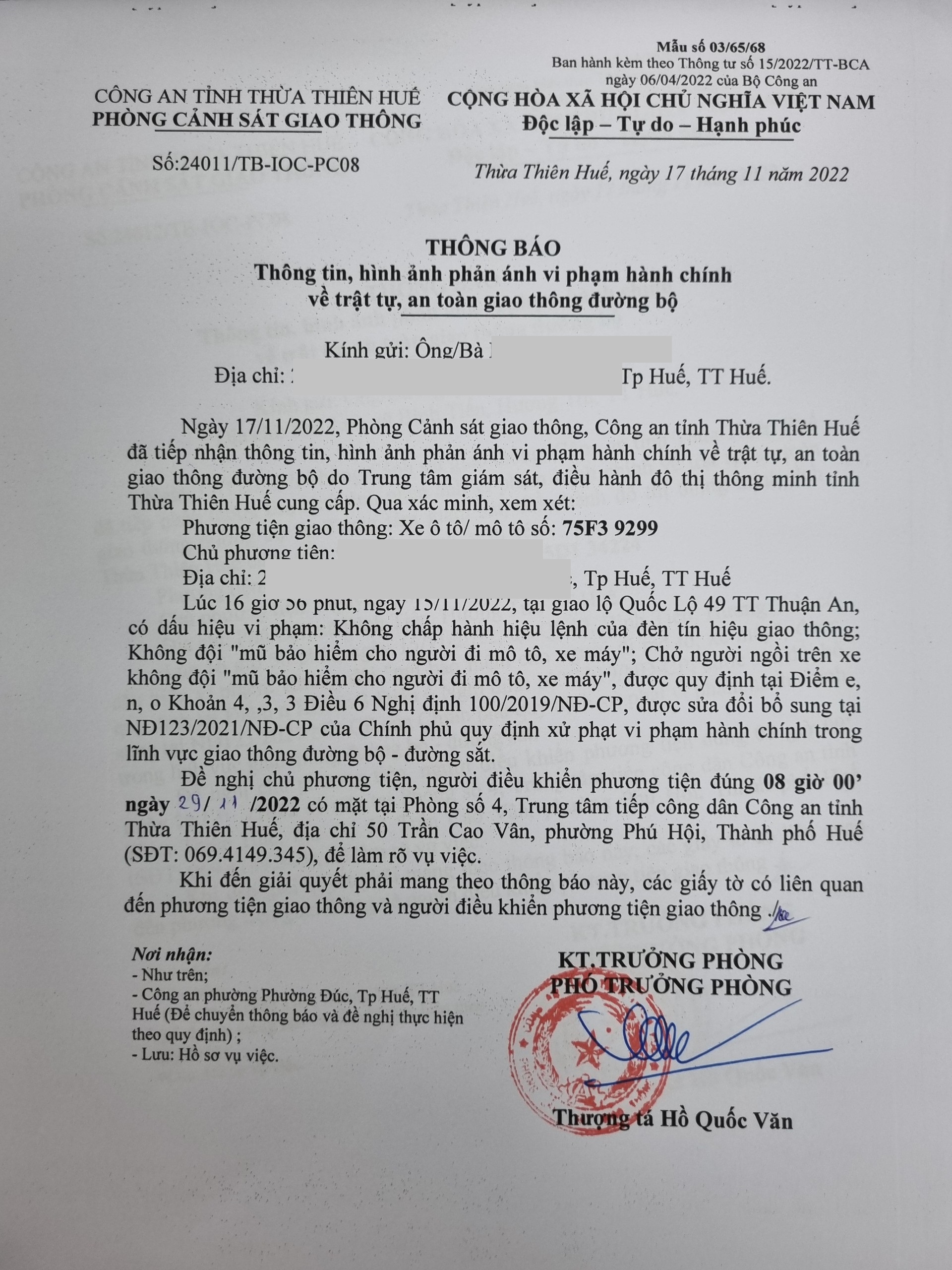 Vấn đề Ông/Bà phản ánh, Công an tỉnh đã chỉ đạo Phòng Cảnh sát giao thông kiểm tra và xin thông báo kết quả xử lý như sau: