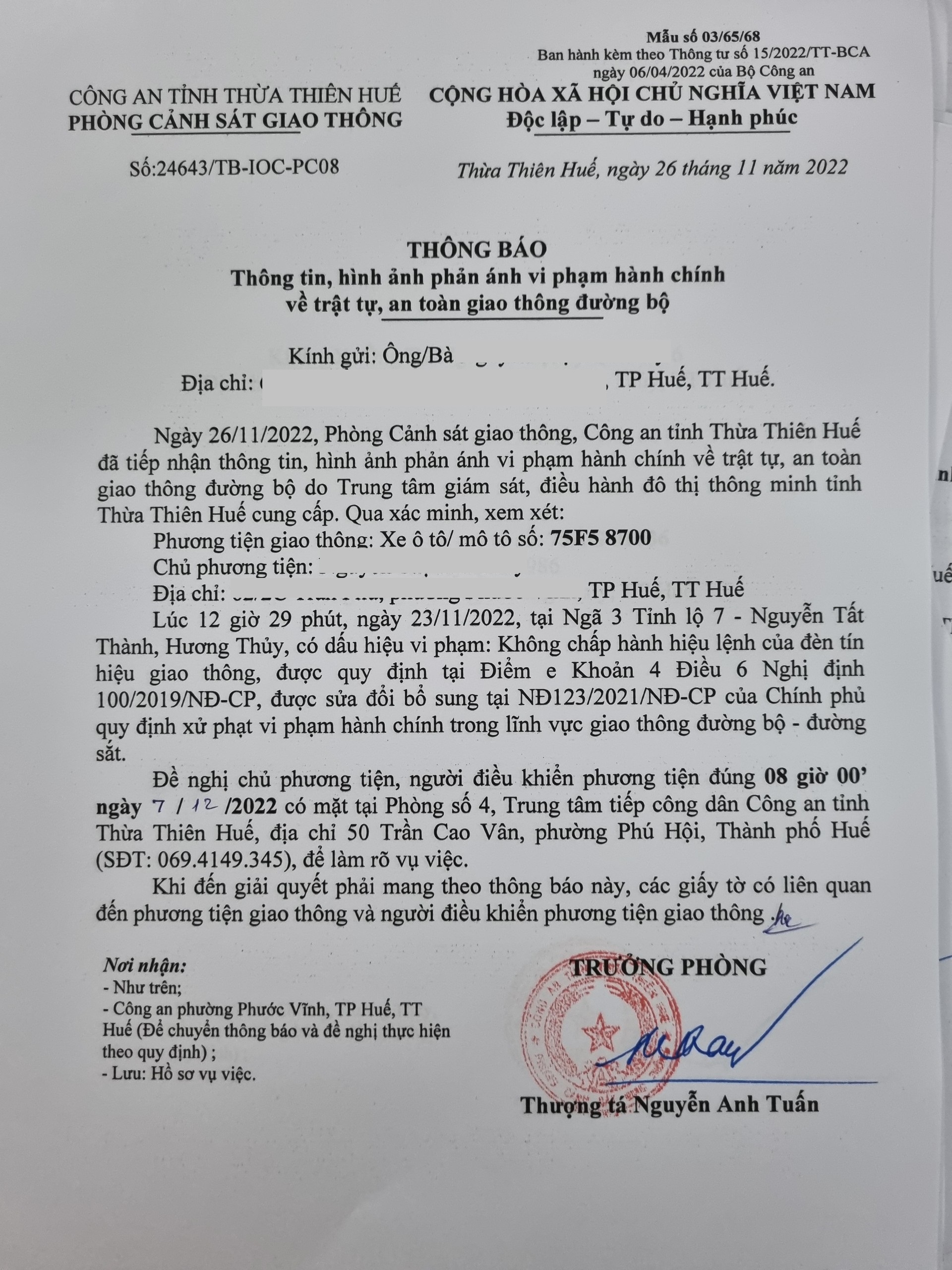 Phòng CSGT đã gửi thông báo, yêu cầu chủ phương tiện đến làm việc theo quy định của pháp luật. Tuy nhiên, đã quá ngày hẹn nhưng chủ phương tiện vẫn chưa đến làm việc theo yêu cầu. Phòng CSGT sẽ tiếp tục thông báo Công an địa phương nơi chủ phương tiện thường trú; đồng thời, thông báo các tổ tuần tra kiểm soát trên địa bàn, trong quá trình làm nhiệm vụ nếu phát hiện sẽ tiến hành dừng xe để xử lý.