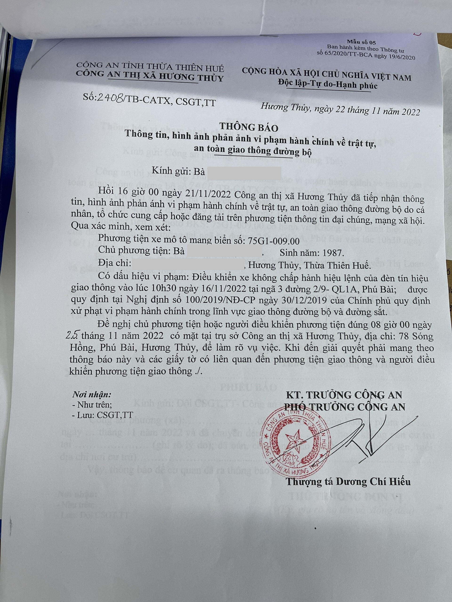 Vấn đề quý Ông/Bà phản ánh, Công an tỉnh đã chỉ đạo Công an thị xã Hương Thuỷ kiểm tra và xin thông báo kết quả xử lý như sau:
