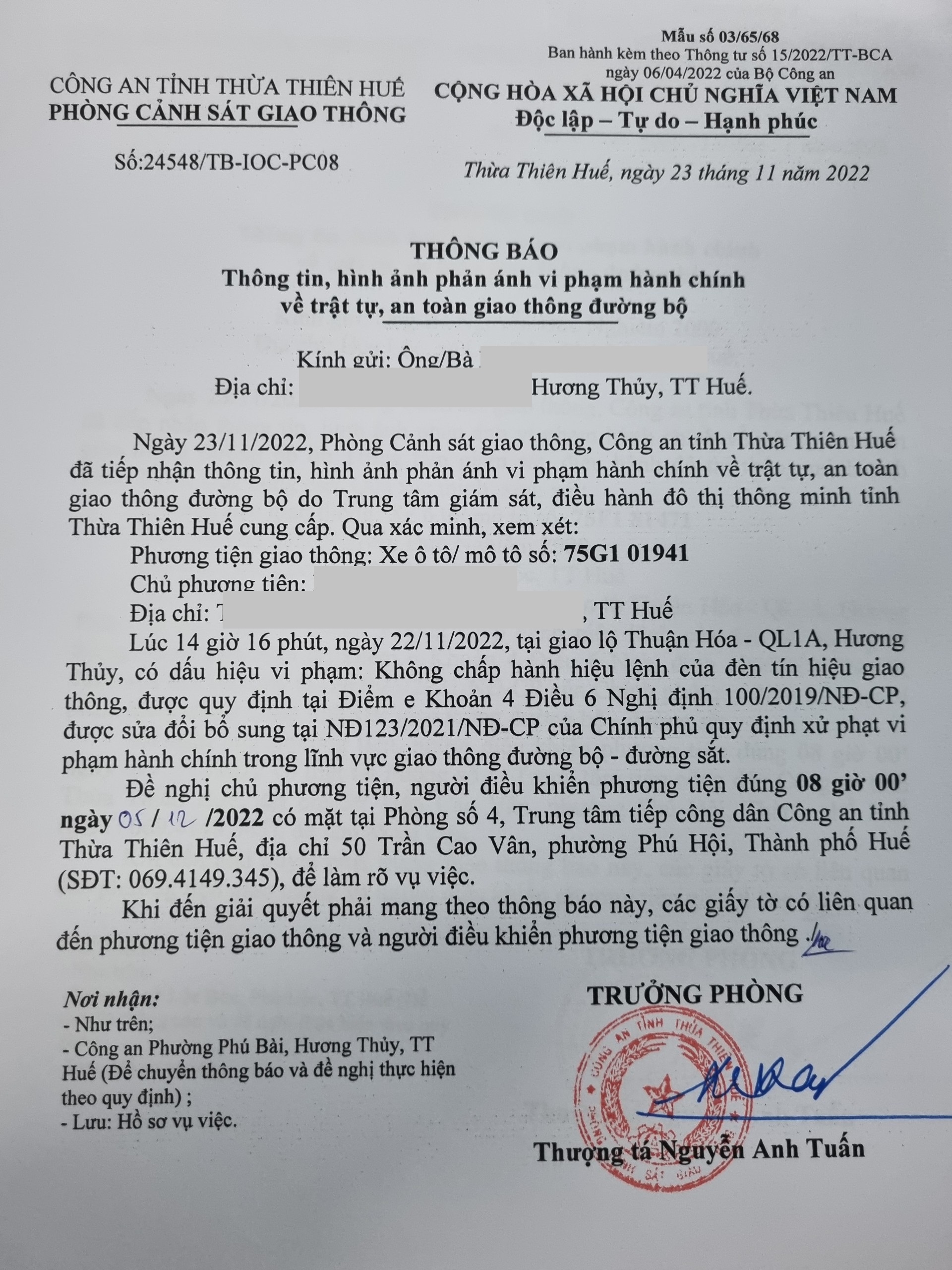 Vấn đề Ông/Bà phản ánh, Công an tỉnh đã chỉ đạo Phòng Cảnh sát giao thông xin thông báo kết quả xử lý như sau: