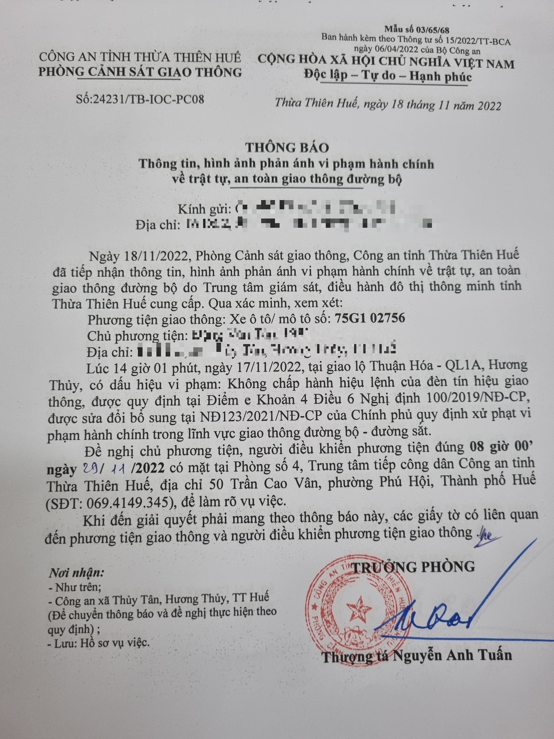 Vấn đề Ông/Bà phản ánh, Công an tỉnh đã chỉ đạo Phòng Cảnh sát giao thông xin thông báo kết quả xử lý như sau:
