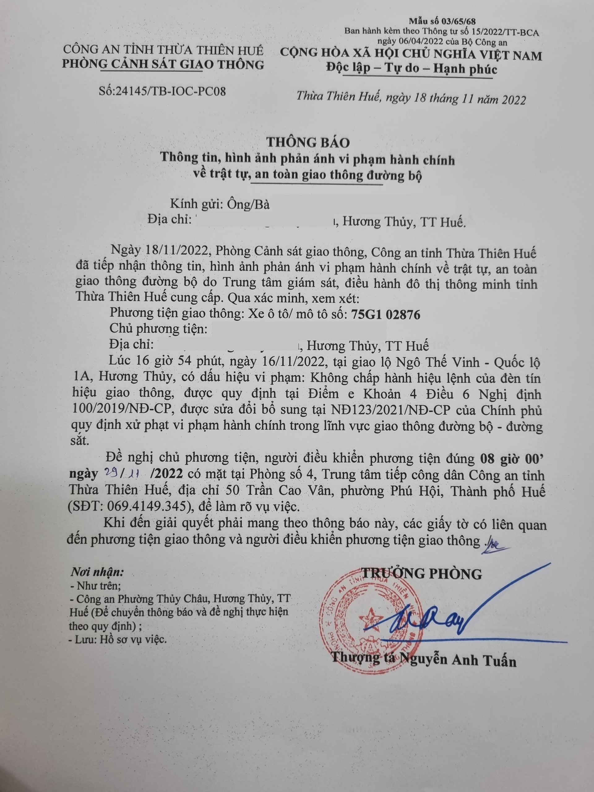 Vấn đề Ông/Bà phản ánh, Công an tỉnh đã chỉ đạo Phòng Cảnh sát giao thông xin thông báo kết quả xử lý như sau: