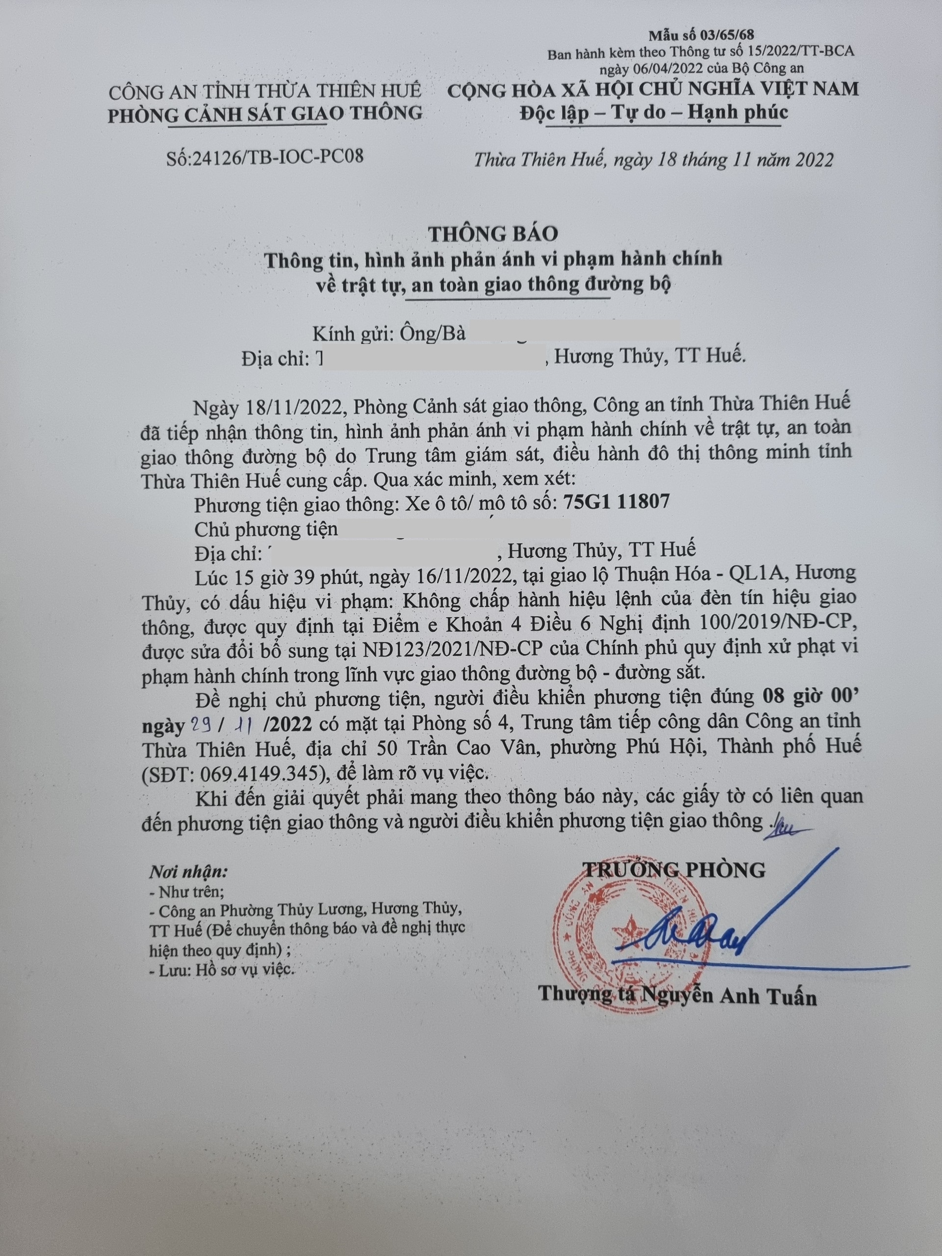 Vấn đề Ông/Bà phản ánh, Công an tỉnh đã chỉ đạo Phòng Cảnh sát giao thông xin thông báo kết quả xử lý như sau: