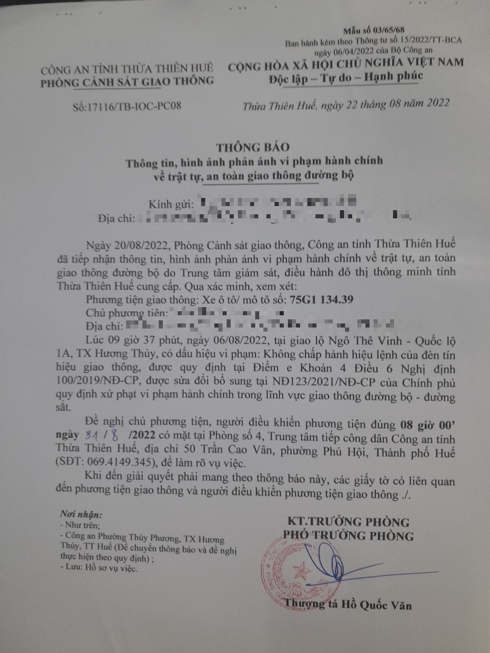 Vấn đề Ông/Bà phản ánh, Công an tỉnh đã chỉ đạo Phòng Cảnh sát giao thông xin thông báo kết quả xử lý như sau: