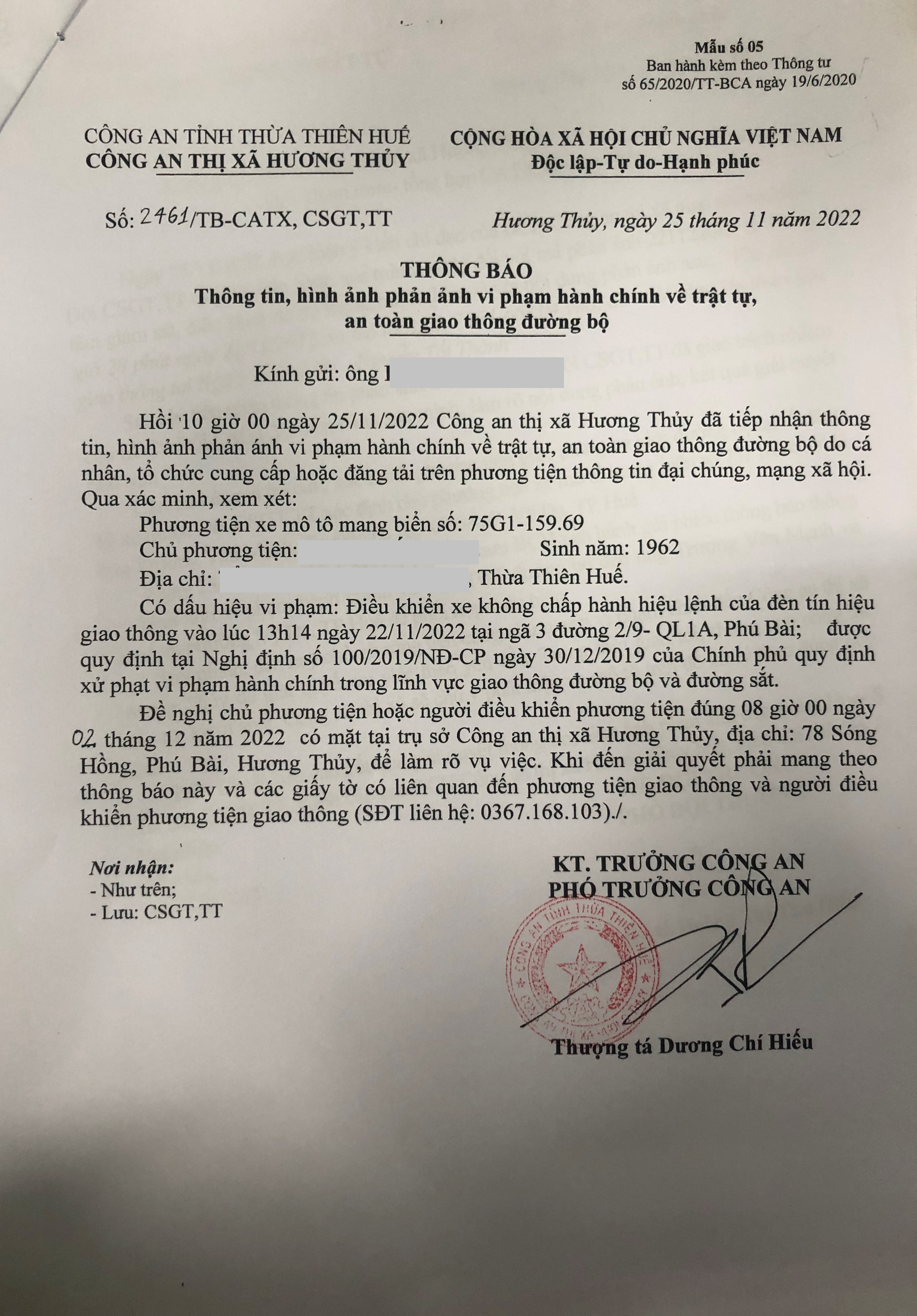Vấn đề Ông/Bà phản ánh, Công an tỉnh đã chỉ đạo Công an thị xã Hương Thủy xin thông báo kết quả xử lý như sau: