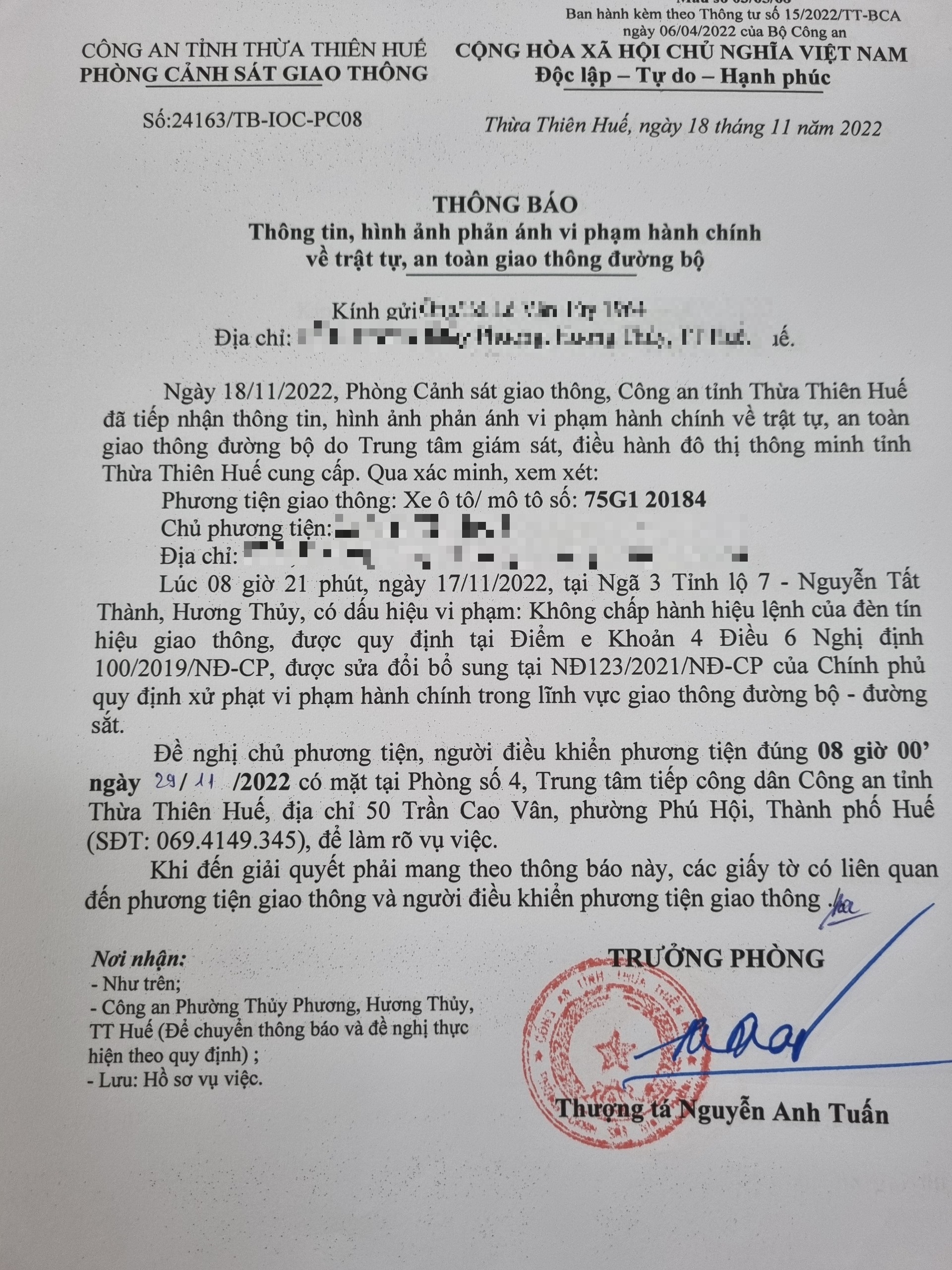 Vấn đề Ông/Bà phản ánh, Công an tỉnh đã chỉ đạo Phòng Cảnh sát giao thông xin thông báo kết quả xử lý như sau: