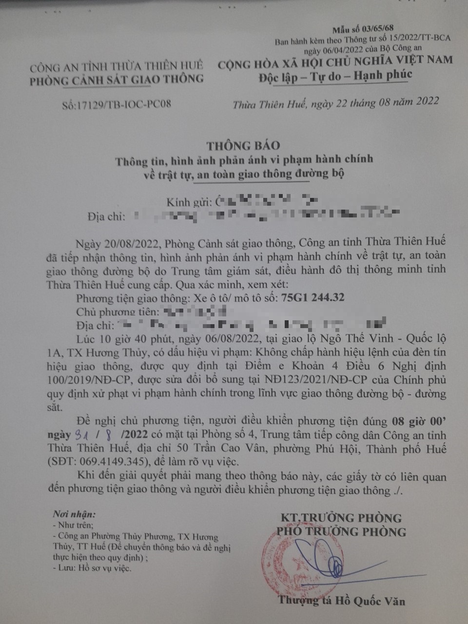 Phòng CSGT đã gửi thông báo, yêu cầu chủ phương tiện đến làm việc theo quy định của pháp luật. Tuy nhiên, đã quá ngày hẹn nhưng chủ phương tiện vẫn chưa đến làm việc theo yêu cầu. Phòng CSGT sẽ tiếp tục thông báo Công an địa phương nơi chủ phương tiện thường trú; đồng thời, thông báo các tổ tuần tra kiểm soát trên địa bàn, trong quá trình làm nhiệm vụ nếu phát hiện sẽ tiến hành dừng xe để xử lý.