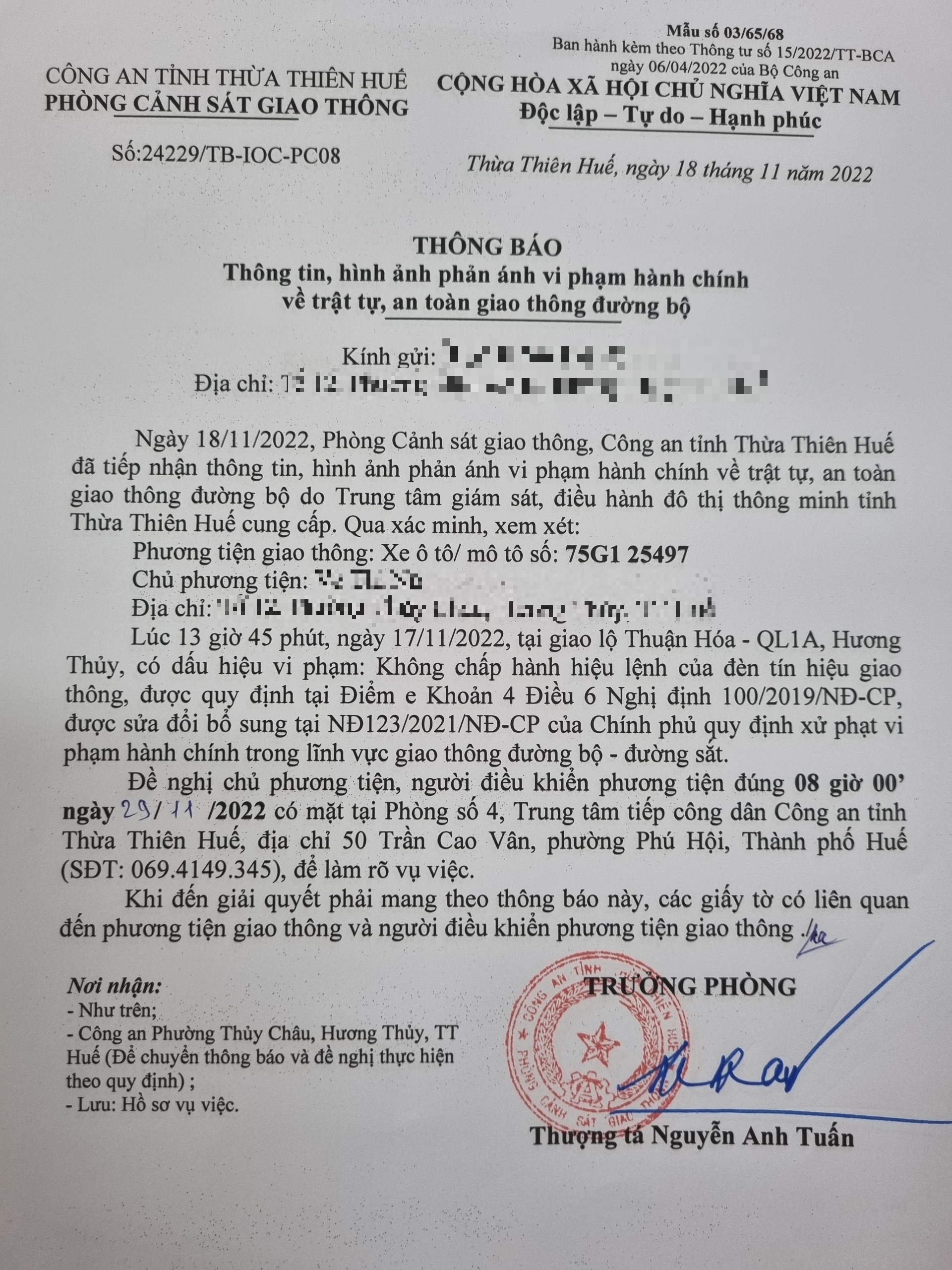 Vấn đề Ông/Bà phản ánh, Công an tỉnh đã chỉ đạo Phòng Cảnh sát giao thông xin thông báo kết quả xử lý như sau: