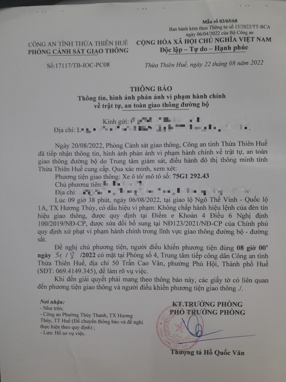 Phòng CSGT đã gửi thông báo, yêu cầu chủ phương tiện đến làm việc theo quy định của pháp luật. Tuy nhiên, đã quá ngày hẹn nhưng chủ phương tiện vẫn chưa đến làm việc theo yêu cầu. Phòng CSGT sẽ tiếp tục thông báo Công an địa phương nơi chủ phương tiện thường trú; đồng thời, thông báo các tổ tuần tra kiểm soát trên địa bàn, trong quá trình làm nhiệm vụ nếu phát hiện sẽ tiến hành dừng xe để xử lý.
