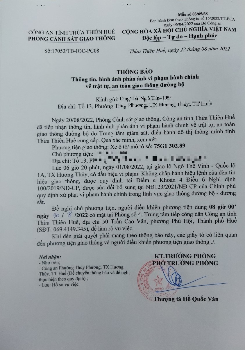 Vấn đề Ông/Bà phản ánh, Công an tỉnh đã chỉ đạo Phòng Cảnh sát giao thông xin thông báo kết quả xử lý như sau: