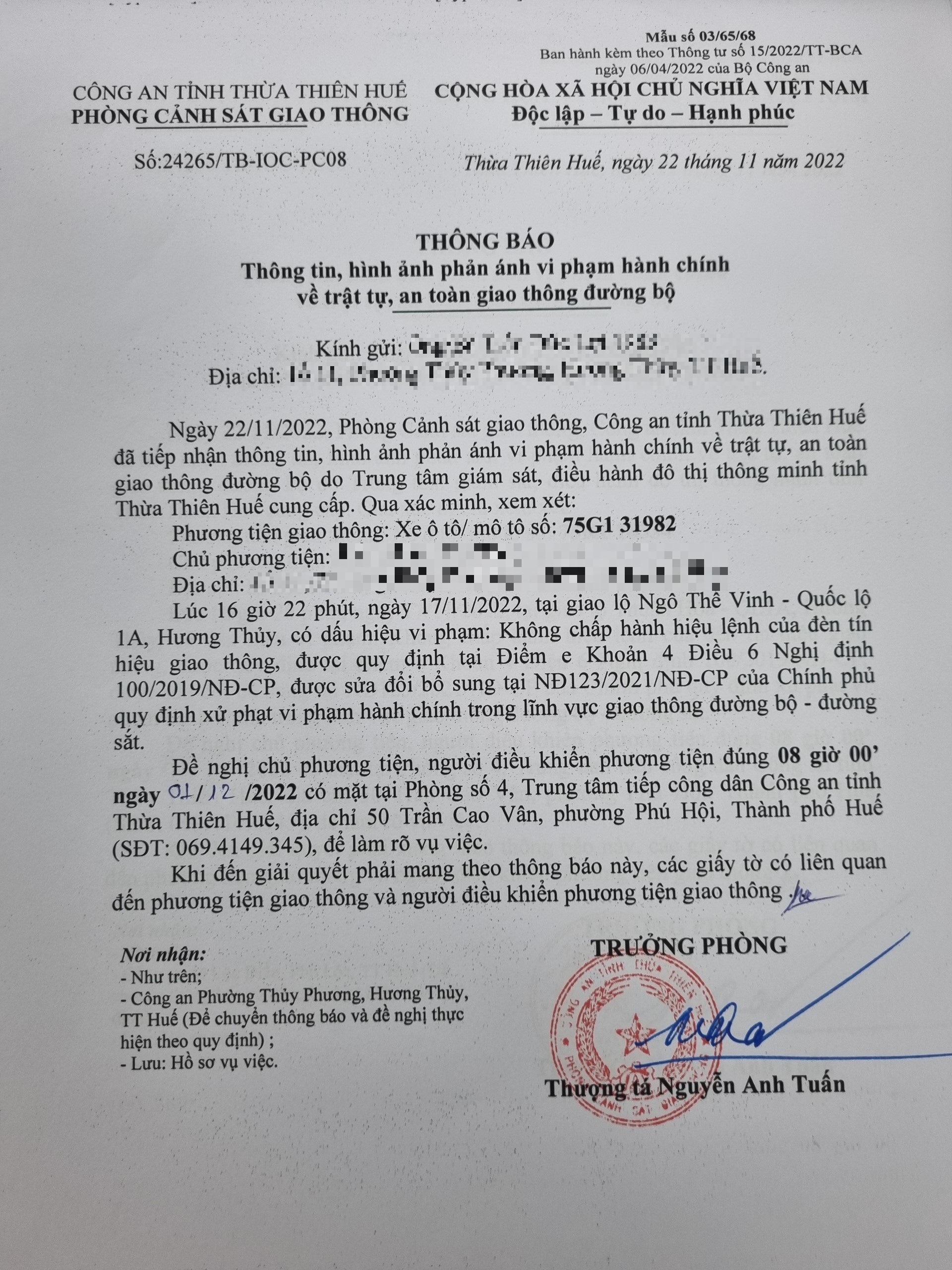 Vấn đề Ông/Bà phản ánh, Công an tỉnh đã chỉ đạo Phòng Cảnh sát giao thông xin thông báo kết quả xử lý như sau: