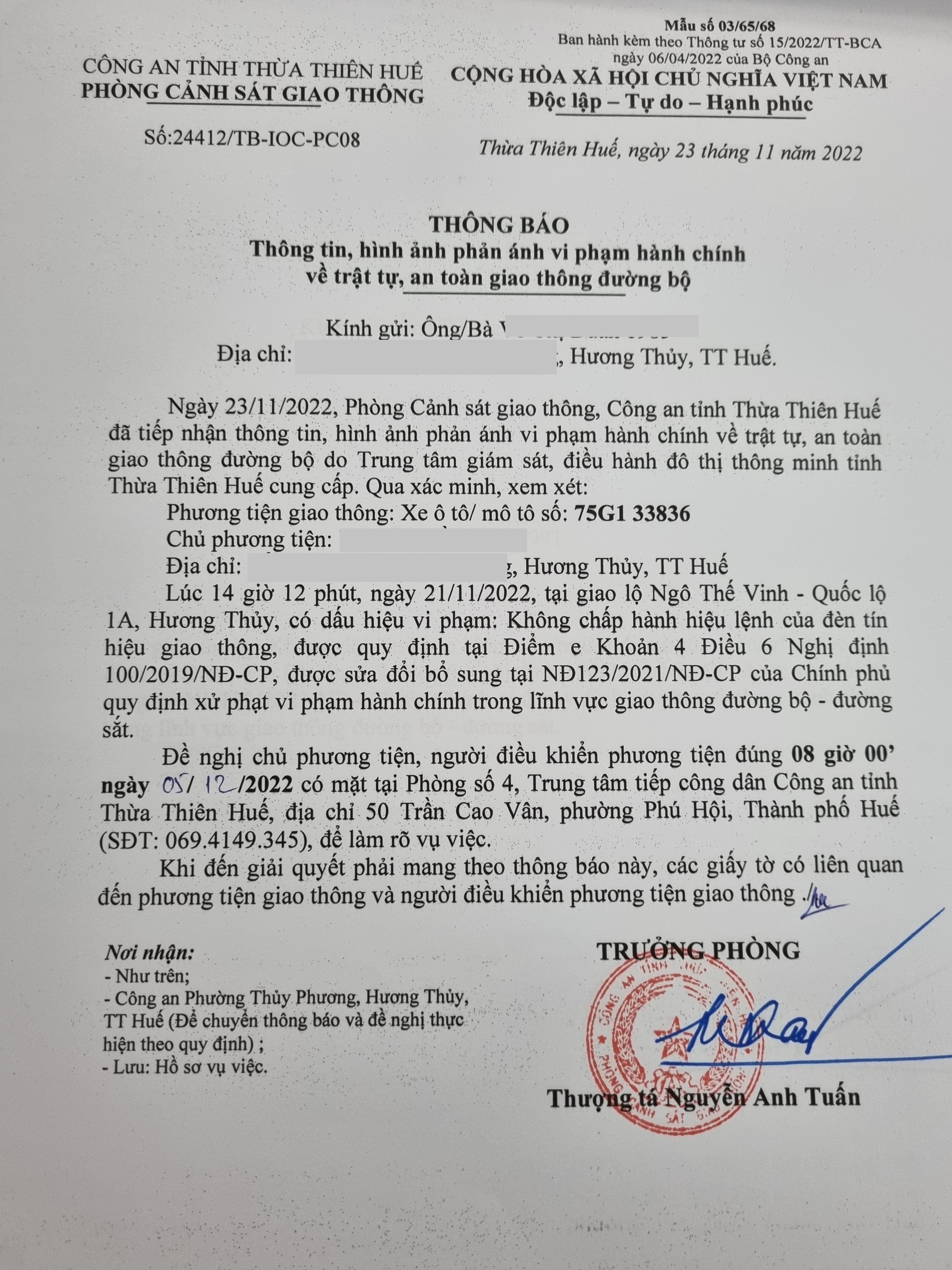 Vấn đề Ông/Bà phản ánh, Công an tỉnh đã chỉ đạo Phòng Cảnh sát giao thông xin thông báo kết quả xử lý như sau: