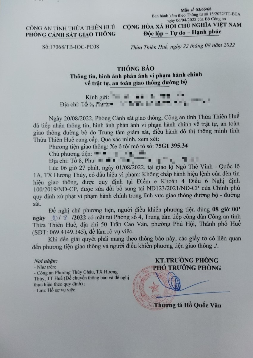 Vấn đề Ông/Bà phản ánh, Công an tỉnh đã chỉ đạo Phòng Cảnh sát giao thông xin thông báo kết quả xử lý như sau: