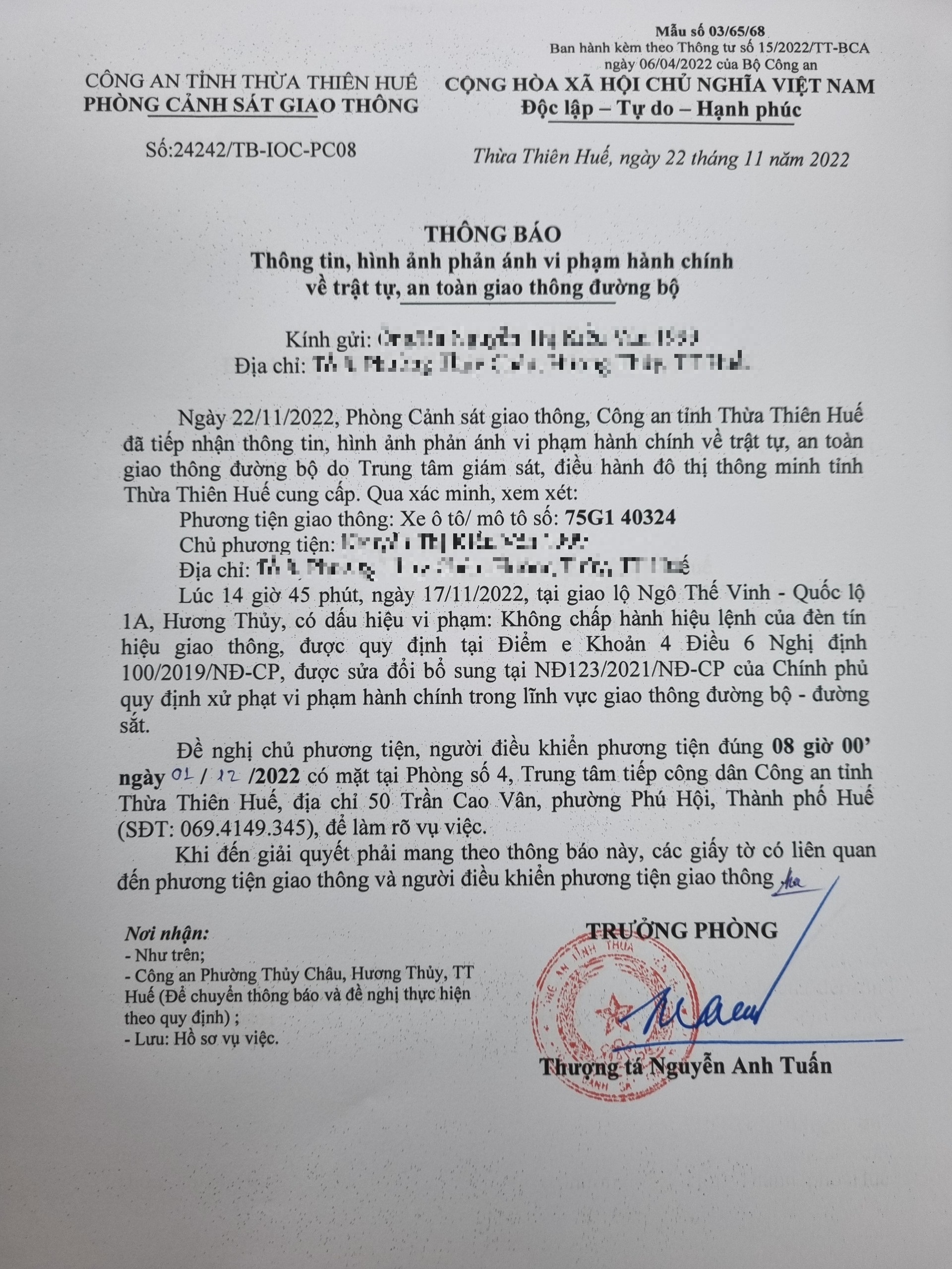 Vấn đề Ông/Bà phản ánh, Công an tỉnh đã chỉ đạo Phòng Cảnh sát giao thông xin thông báo kết quả xử lý như sau: