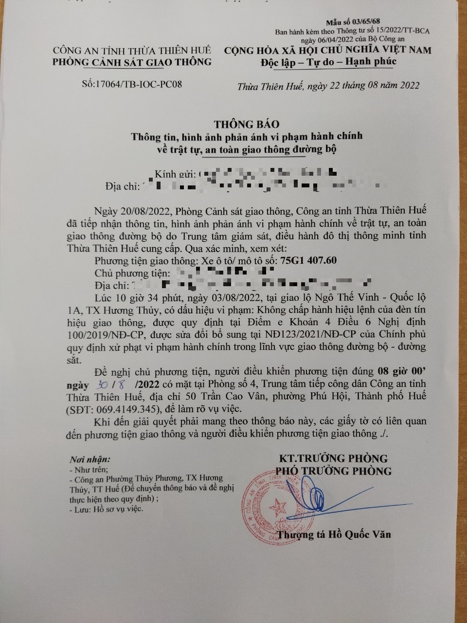 Vấn đề Ông/Bà phản ánh, Công an tỉnh đã chỉ đạo Phòng Cảnh sát giao thông xin thông báo kết quả xử lý như sau: