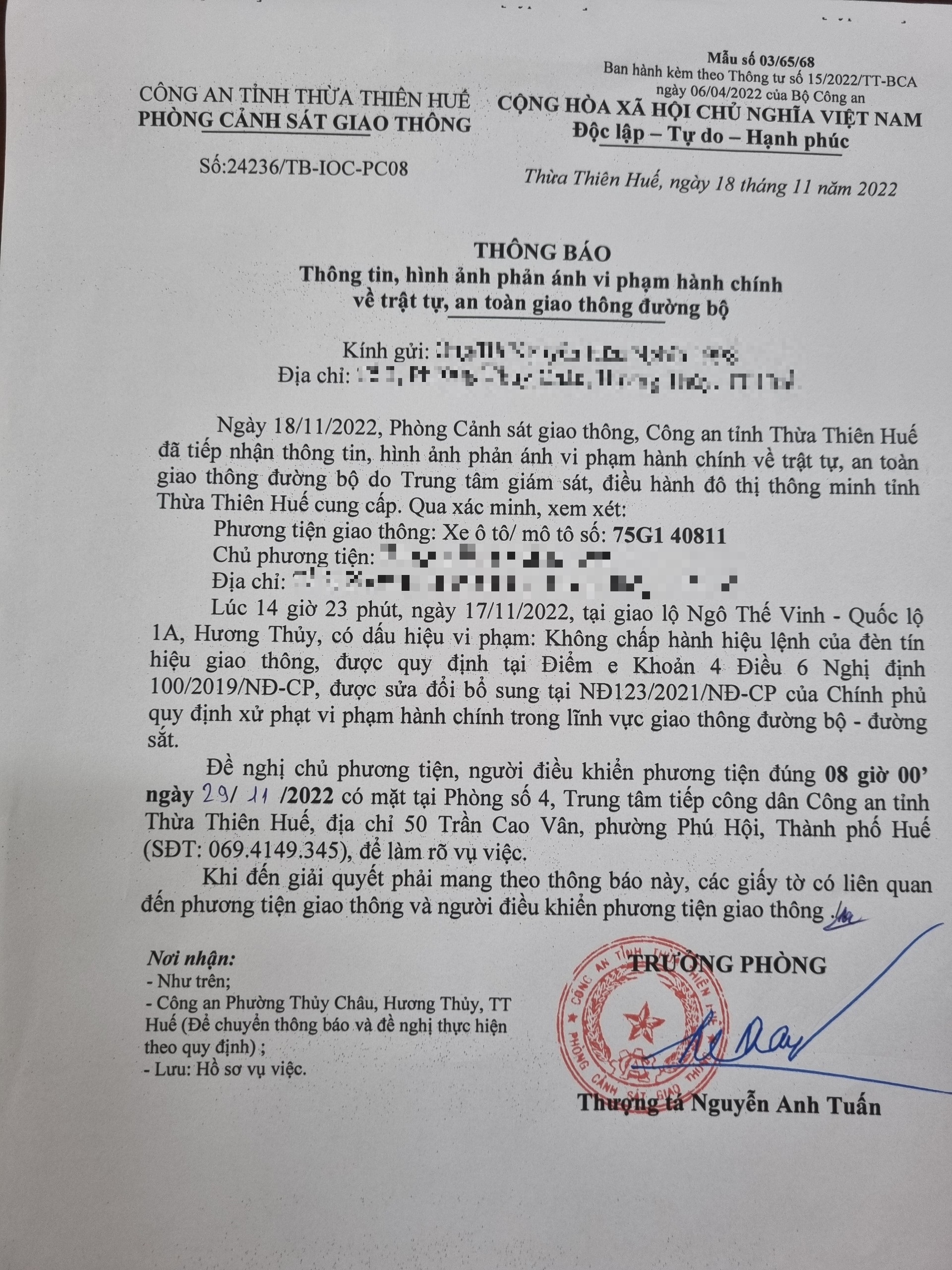 Phòng CSGT đã gửi thông báo, yêu cầu chủ phương tiện đến làm việc theo quy định của pháp luật. Tuy nhiên, đã quá ngày hẹn nhưng chủ phương tiện vẫn chưa đến làm việc theo yêu cầu. Phòng CSGT sẽ tiếp tục thông báo Công an địa phương nơi chủ phương tiện thường trú; đồng thời, thông báo các tổ tuần tra kiểm soát trên địa bàn, trong quá trình làm nhiệm vụ nếu phát hiện sẽ tiến hành dừng xe để xử lý.