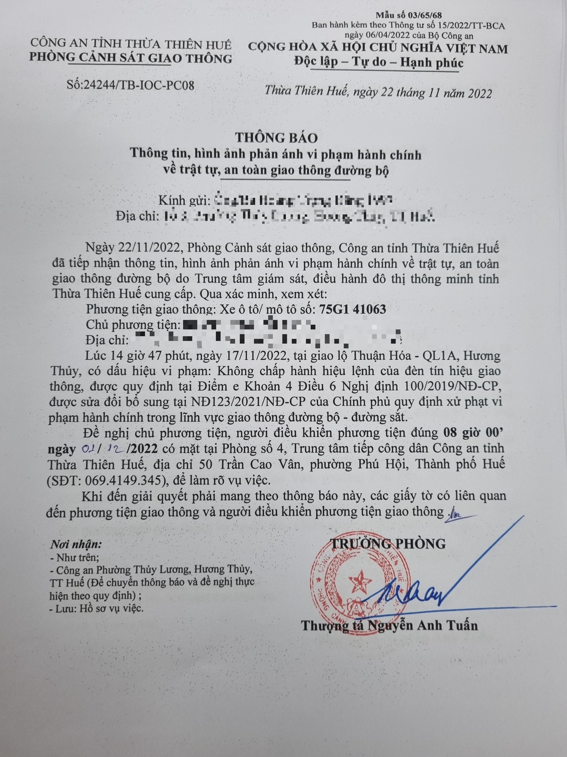 Vấn đề Ông/Bà phản ánh, Công an tỉnh đã chỉ đạo Phòng Cảnh sát giao thông xin thông báo kết quả xử lý như sau: