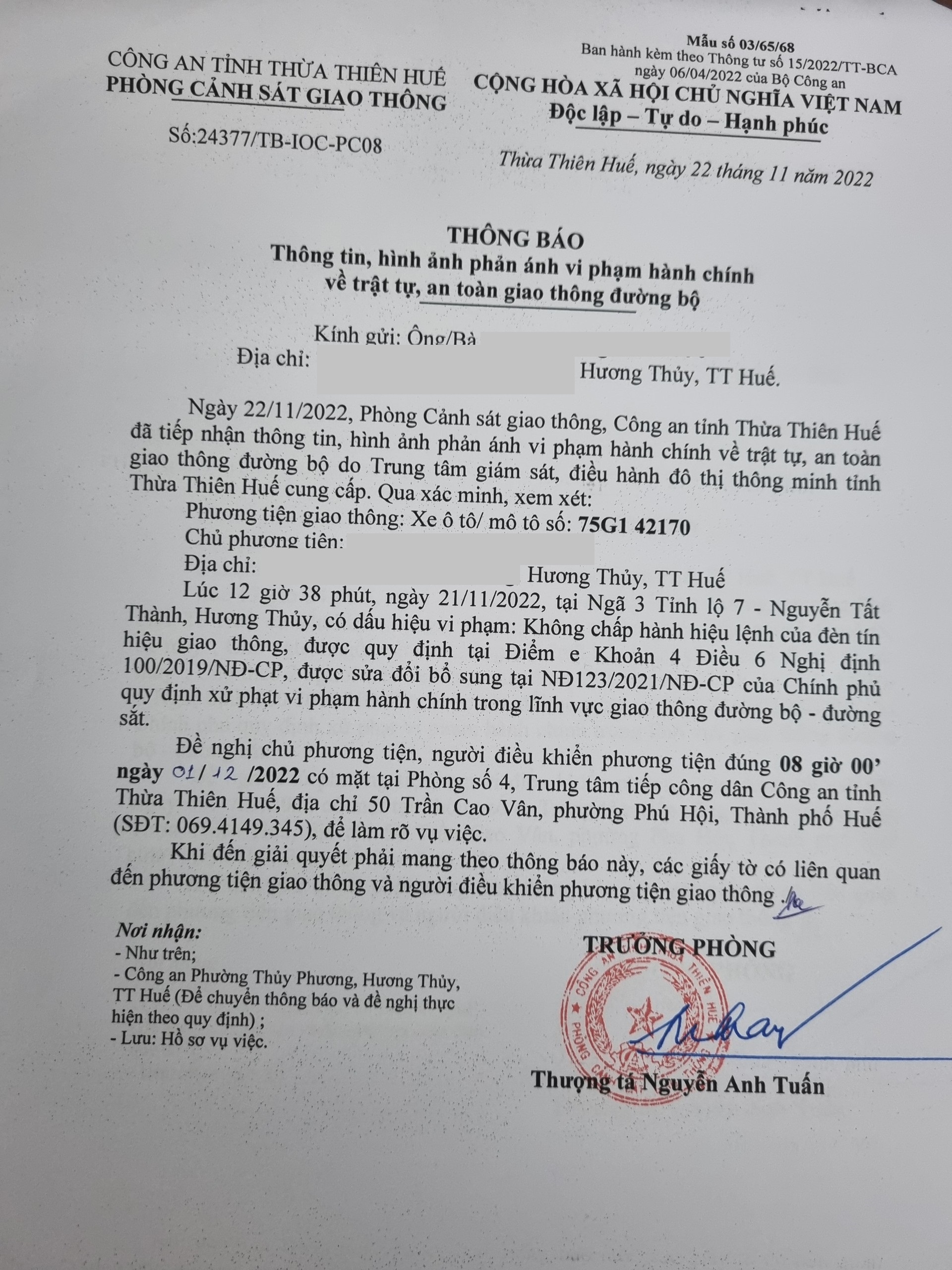 Vấn đề Ông/Bà phản ánh, Công an tỉnh đã chỉ đạo Phòng Cảnh sát giao thông xin thông báo kết quả xử lý như sau: