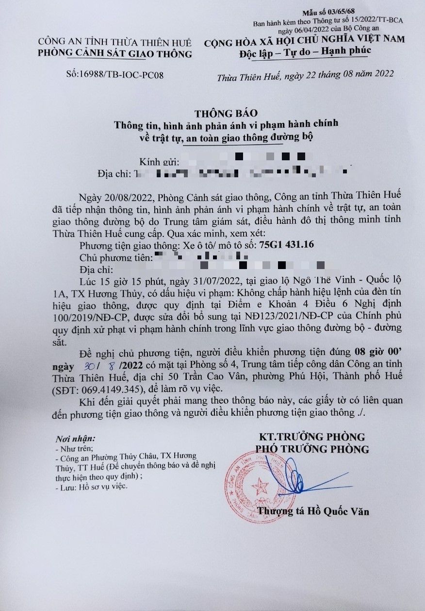 Vấn đề Ông/Bà phản ánh, Công an tỉnh đã chỉ đạo Phòng Cảnh sát giao thông xin thông báo kết quả xử lý như sau: