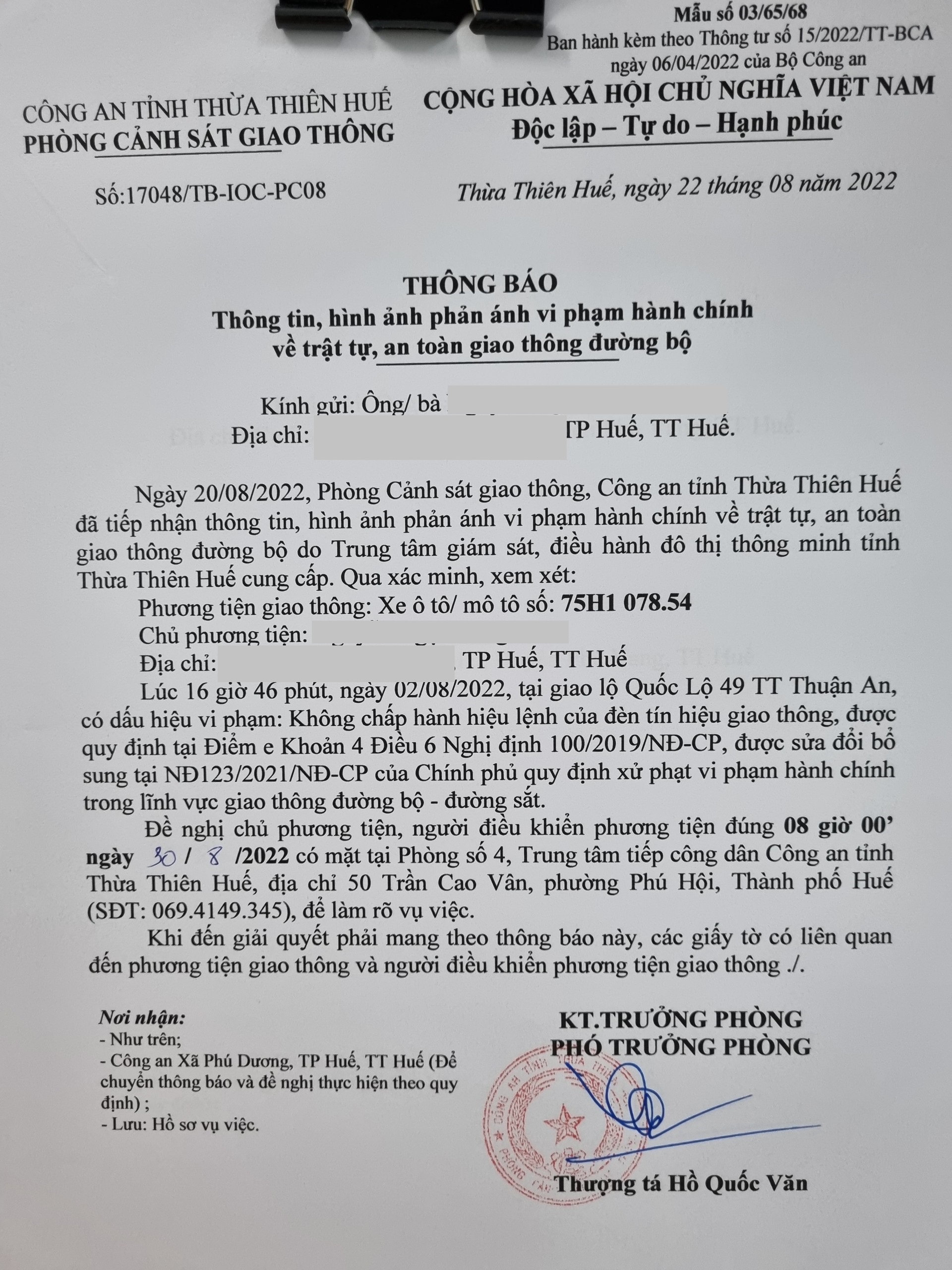 Phòng CSGT đã gửi thông báo, yêu cầu chủ phương tiện đến làm việc theo quy định của pháp luật. Tuy nhiên, đã quá ngày hẹn nhưng chủ phương tiện vẫn chưa đến làm việc theo yêu cầu. Phòng CSGT sẽ tiếp tục thông báo Công an địa phương nơi chủ phương tiện thường trú; đồng thời, thông báo các tổ tuần tra kiểm soát trên địa bàn, trong quá trình làm nhiệm vụ nếu phát hiện sẽ tiến hành dừng xe để xử lý.
