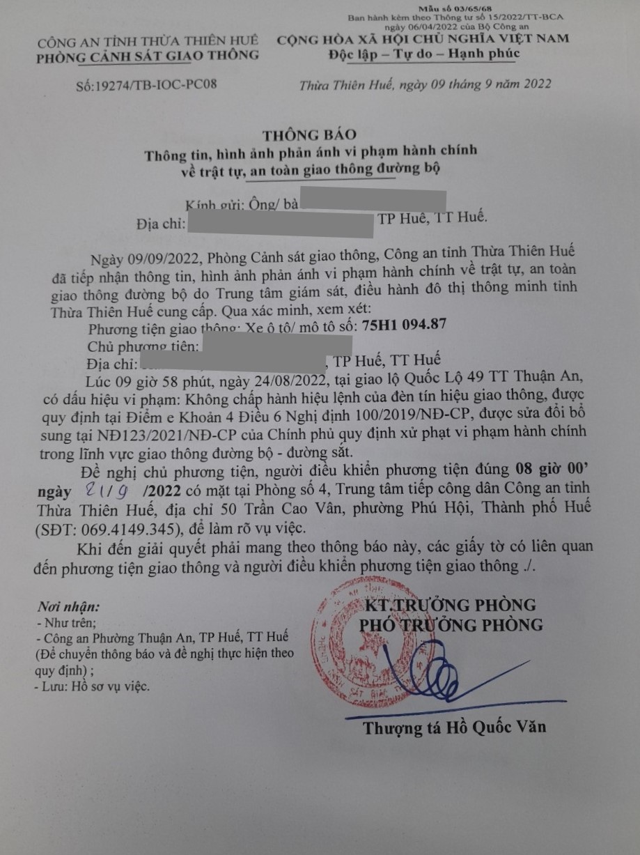 Vấn đề Ông/Bà phản ánh, Công an tỉnh đã chỉ đạo Phòng Cảnh sát giao thông xin thông báo kết quả xử lý như sau: