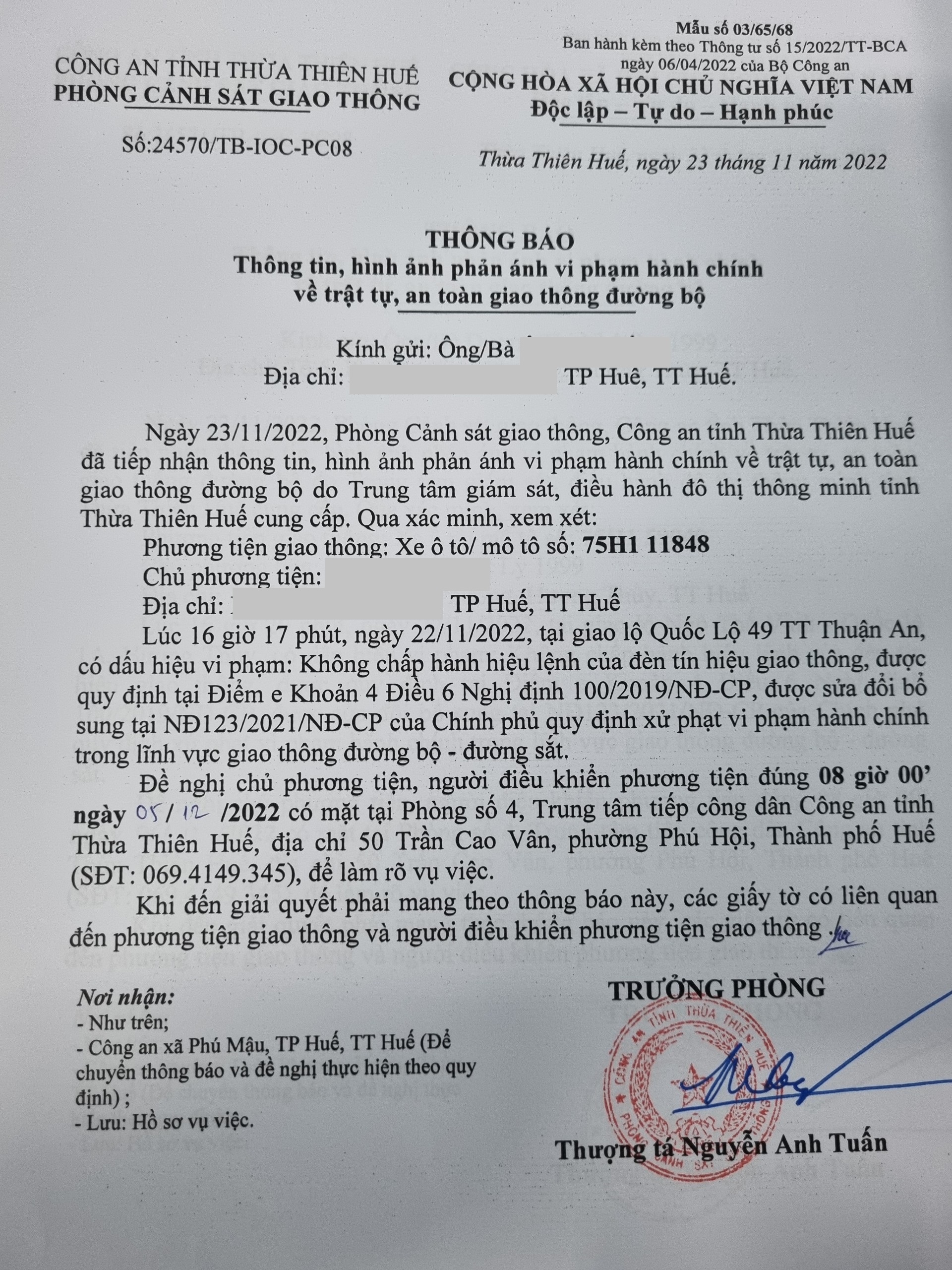 Vấn đề Ông/Bà phản ánh, Công an tỉnh đã chỉ đạo Phòng Cảnh sát giao thông xin thông báo kết quả xử lý như sau:
