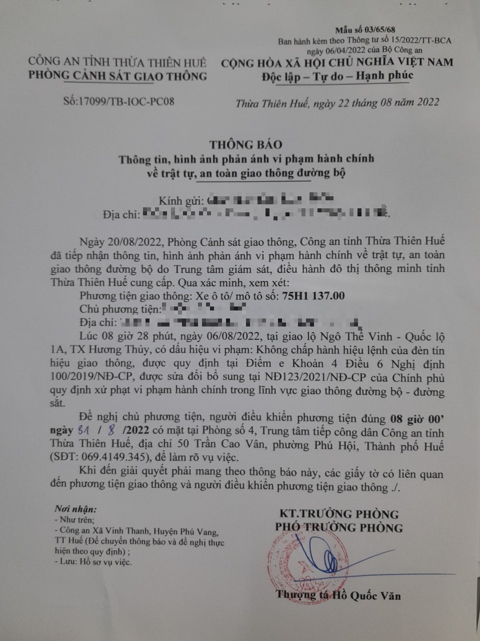 Vấn đề Ông/Bà phản ánh, Công an tỉnh đã chỉ đạo Phòng Cảnh sát giao thông xin thông báo kết quả xử lý như sau: