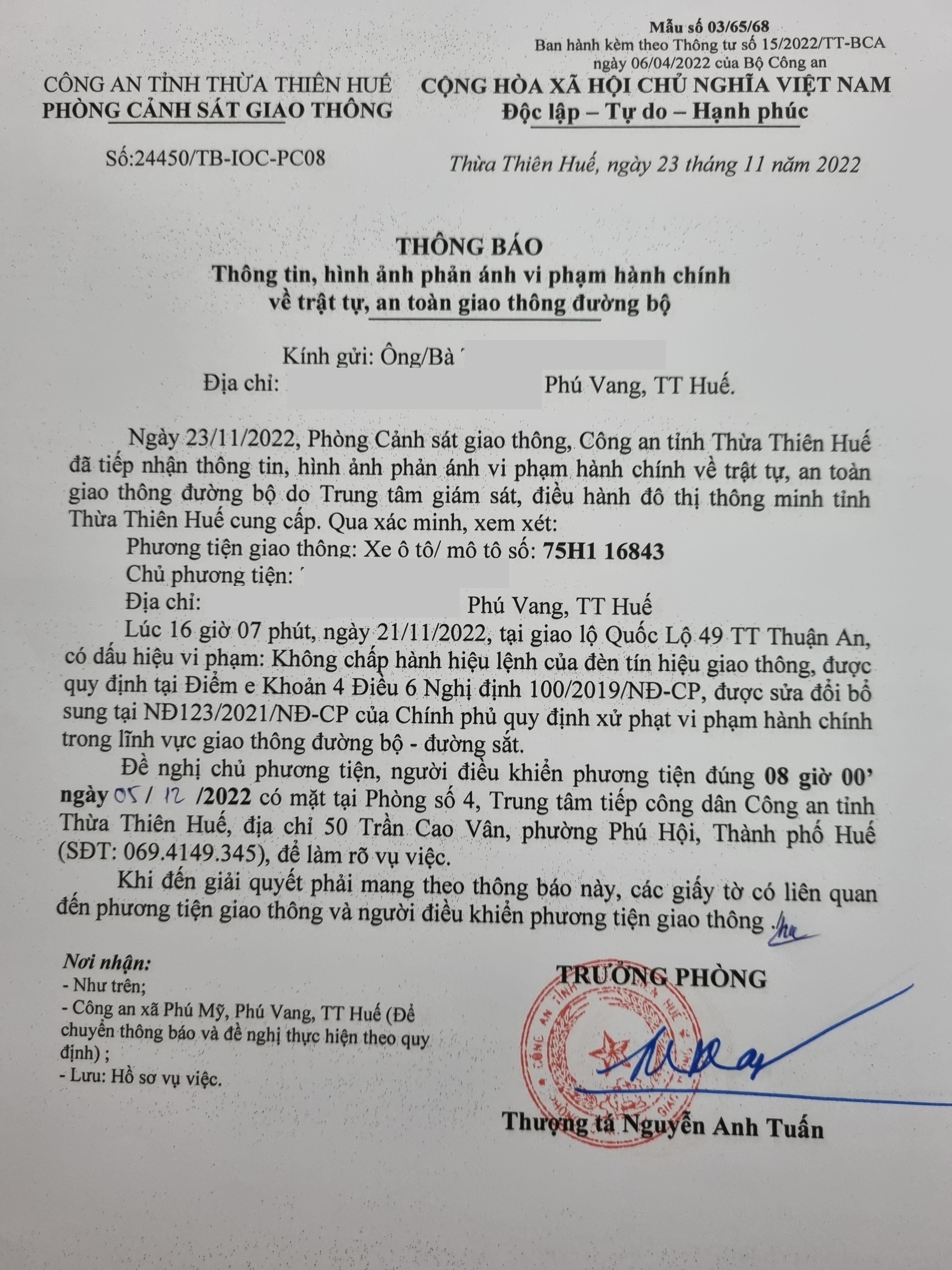 Vấn đề Ông/Bà phản ánh, Công an tỉnh đã chỉ đạo Phòng Cảnh sát giao thông xin thông báo kết quả xử lý như sau: