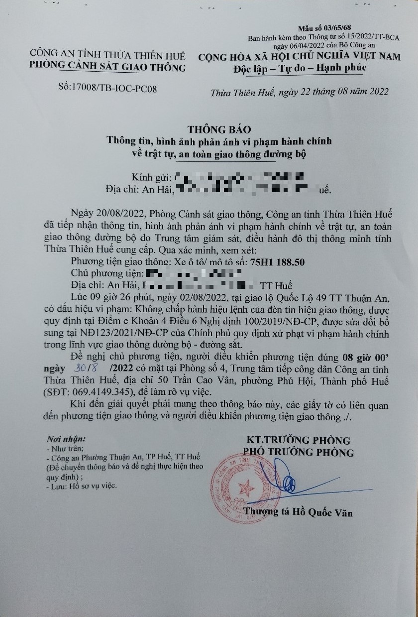 Vấn đề Ông/Bà phản ánh, Công an tỉnh đã chỉ đạo Phòng Cảnh sát giao thông xin thông báo kết quả xử lý như sau: