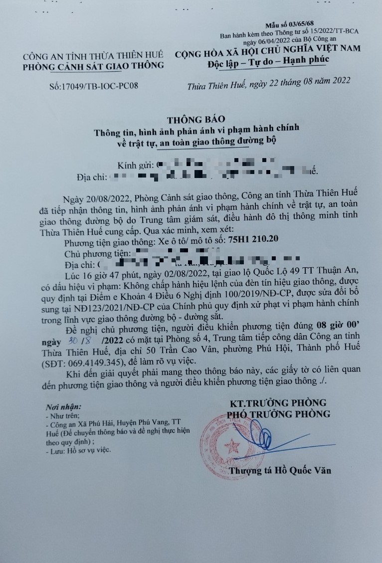 Vấn đề Ông/Bà phản ánh, Công an tỉnh đã chỉ đạo Phòng Cảnh sát giao thông xin thông báo kết quả xử lý như sau:
