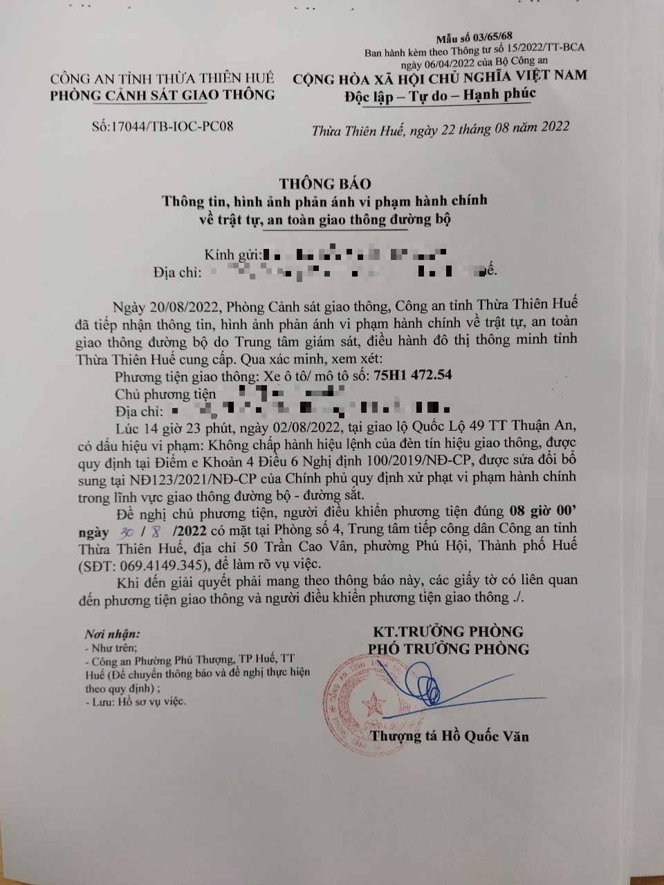 Vấn đề Ông/Bà phản ánh, Công an tỉnh đã chỉ đạo Phòng Cảnh sát giao thông xin thông báo kết quả xử lý như sau: