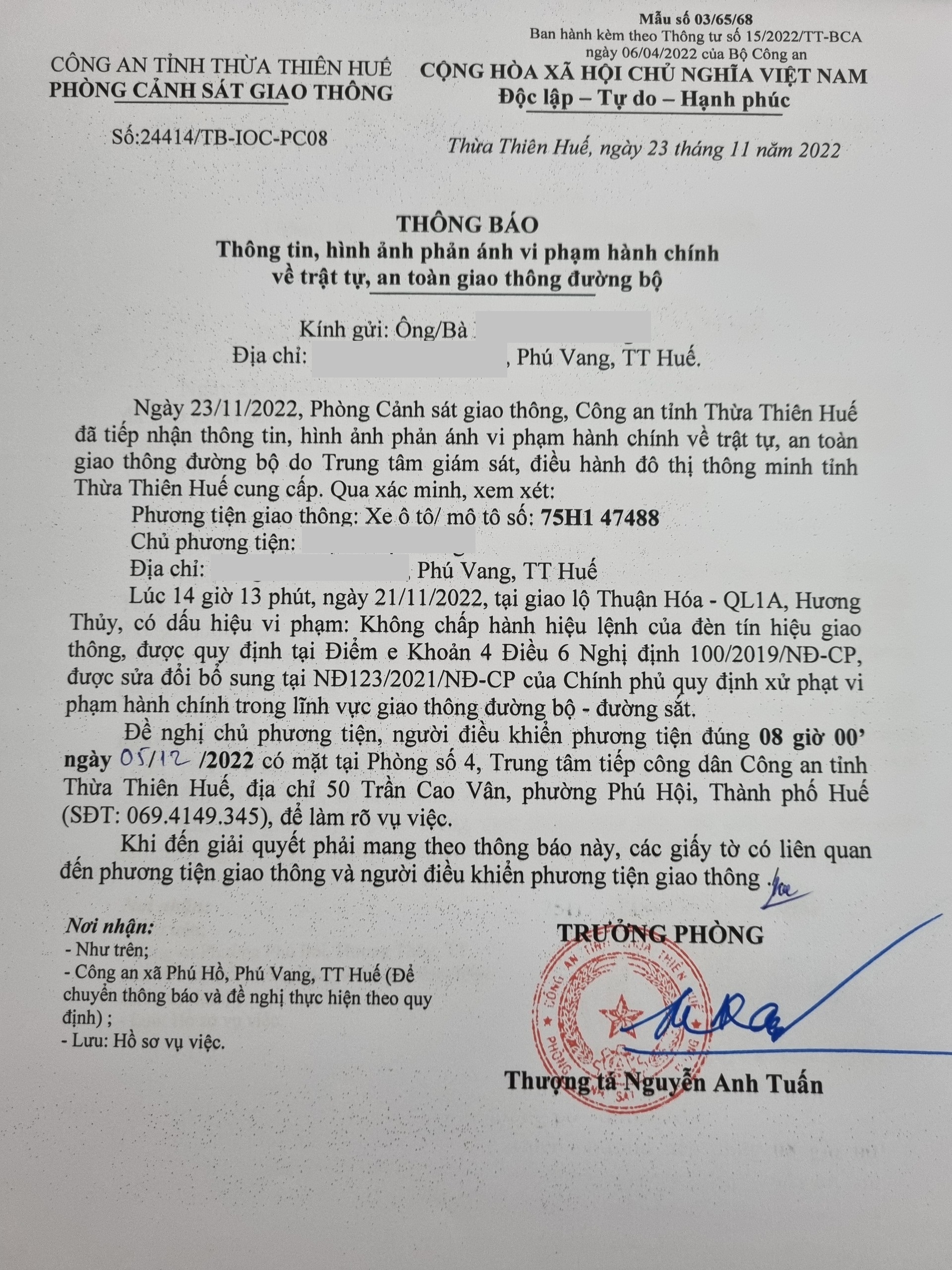 Vấn đề Ông/Bà phản ánh, Công an tỉnh đã chỉ đạo Phòng Cảnh sát giao thông xin thông báo kết quả xử lý như sau: