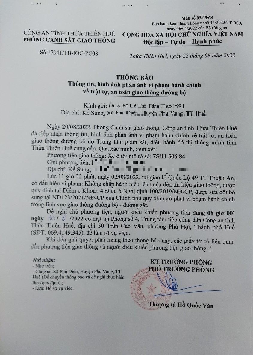 Vấn đề Ông/Bà phản ánh, Công an tỉnh đã chỉ đạo Phòng Cảnh sát giao thông xin thông báo kết quả xử lý như sau: