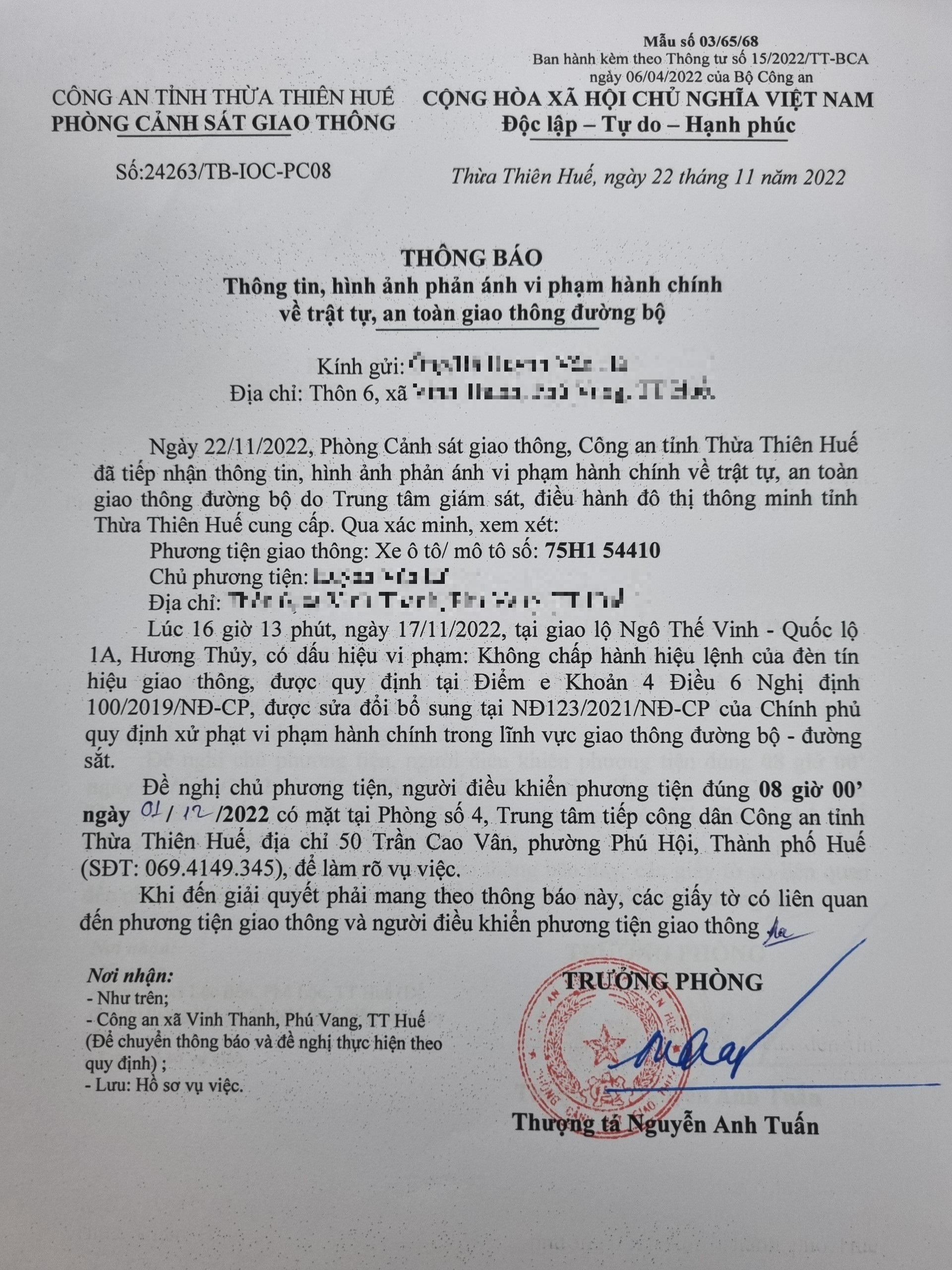 Vấn đề Ông/Bà phản ánh, Công an tỉnh đã chỉ đạo Phòng Cảnh sát giao thông xin thông báo kết quả xử lý như sau: