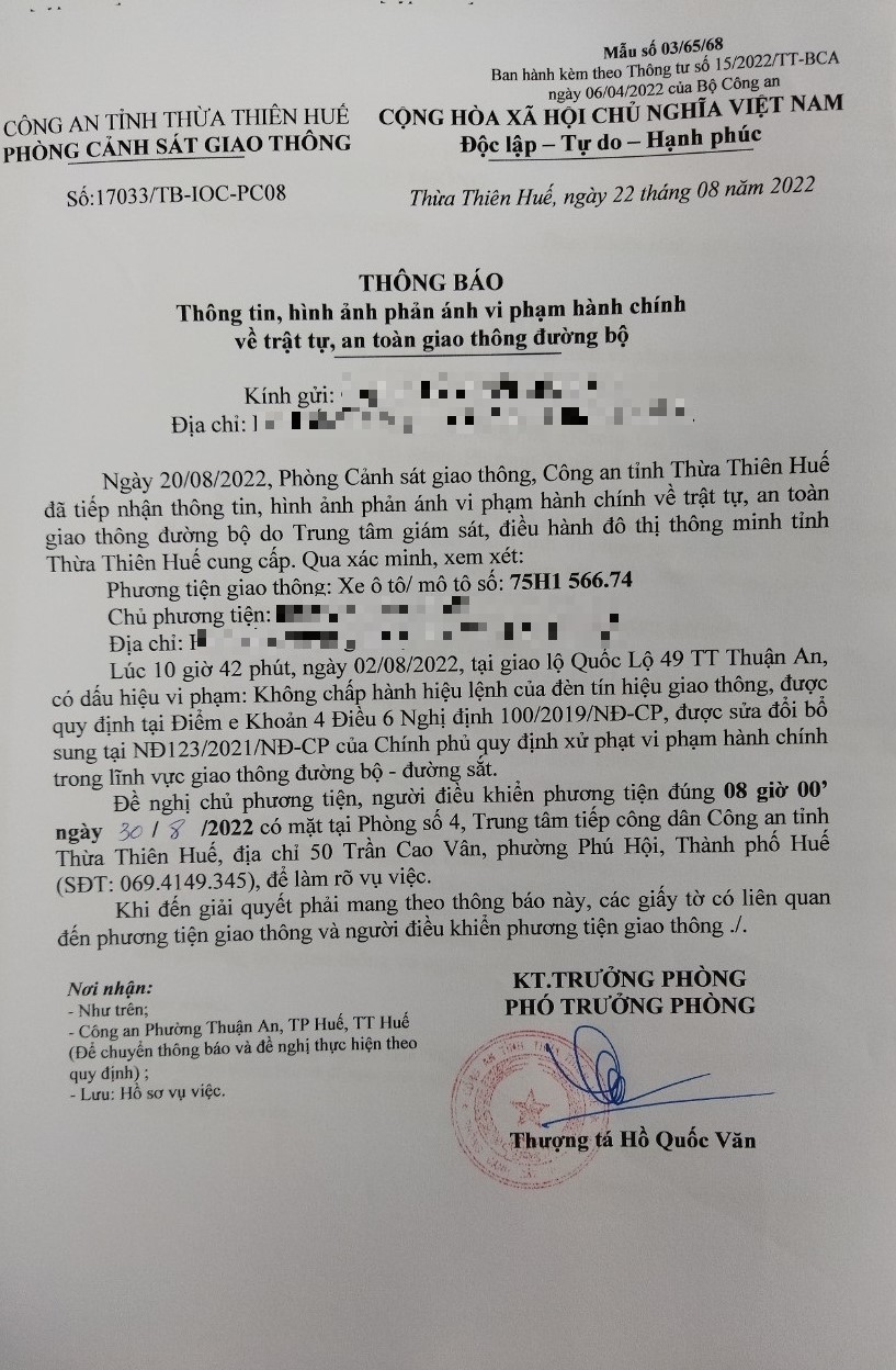 Vấn đề Ông/Bà phản ánh, Công an tỉnh đã chỉ đạo Phòng Cảnh sát giao thông xin thông báo kết quả xử lý như sau: