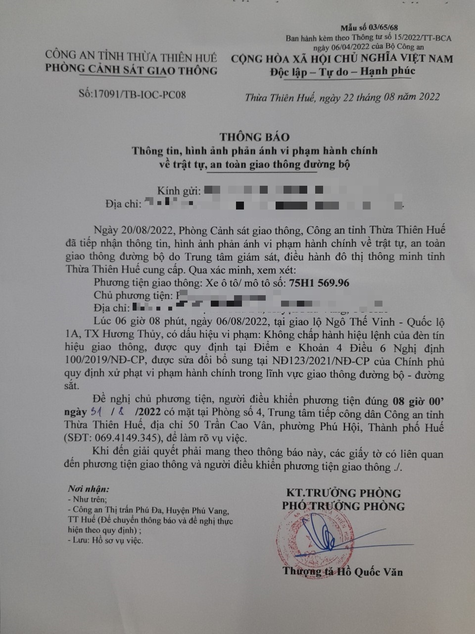 Vấn đề Ông/Bà phản ánh, Công an tỉnh đã chỉ đạo Phòng Cảnh sát giao thông xin thông báo kết quả xử lý như sau: